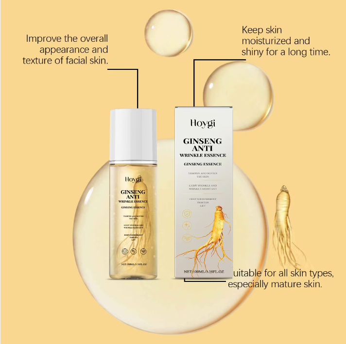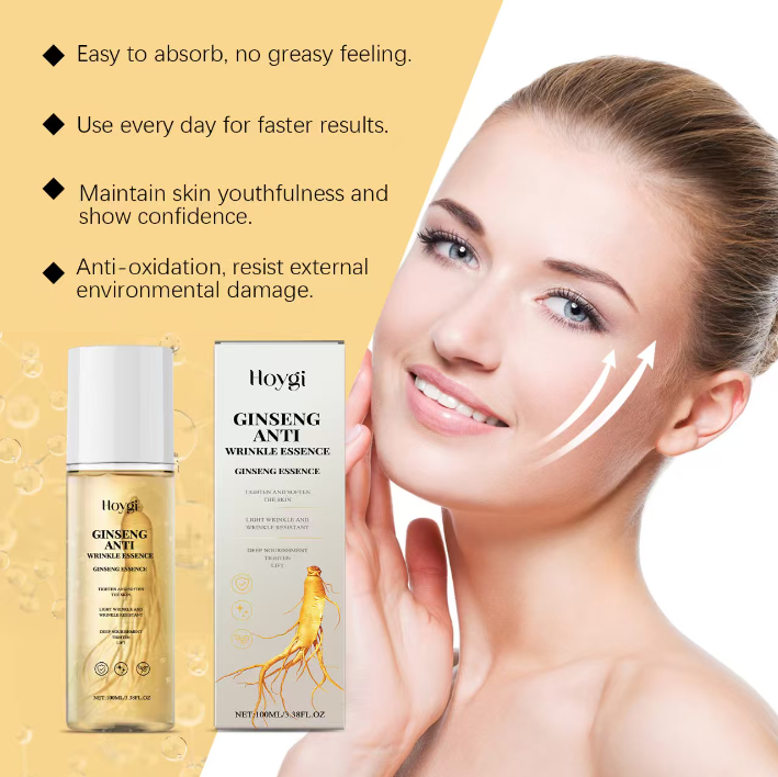 Para problemas como linhas finas, linhas secas e flacidez, o Hoygi Ginseng Anti-Wrinkle Essence Liquid demonstra capacidades excepcionais anti-rugas. Ele pode atingir com precisão linhas dinâmicas e estáticas, ao apertar a pele e aumentar a elasticidade, reduzir gradualmente as linhas do riso nos cantos dos olhos, linhas de expressão na testa, etc., enquanto aperta o contorno do rosto, tornando a linha do maxilar mais nítida, recriando o rosto jovem em formato de V, e cada aplicação é uma resistência suave ao tempo.