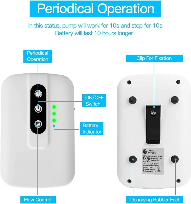 Você ama pescar, mas frequentemente se preocupa que os peixes possam perder sua vitalidade por falta de oxigênio? Uma bomba de oxigênio recarregável para pesca se tornará sua assistente confiável durante suas viagens de pesca, tornando sua jornada de pesca mais tranquila e agradável!