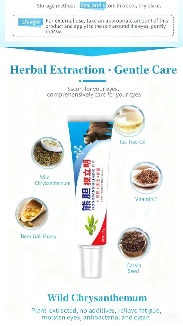 Na vida moderna, o uso frequente de telefones celulares e computadores levou a problemas oculares frequentes, como ressecamento, fadiga e até mesmo o risco de miopia. A pomada protetora dos olhos da bílis de urso, com o ingrediente principal da essência de ervas da bílis de urso, integra várias funções, como antibacteriana, aliviando a fadiga ocular, melhorando o ressecamento, prevenindo e auxiliando na melhora da miopia e fornece proteção abrangente à saúde dos olhos.