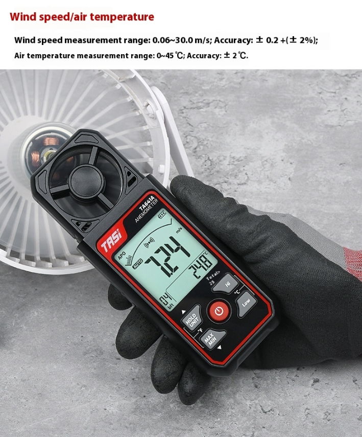 É realmente um "Modelo Compacto": com corpo do tamanho da palma da mão, pode ser segurado e operado com uma mão, e pode ser facilmente colocado em uma bolsa de ferramentas sem dificuldade. Seja subindo para detectar dutos de ventilação ou realizando medições de fluxo de ar externo, sua leveza torna a operação mais flexível.