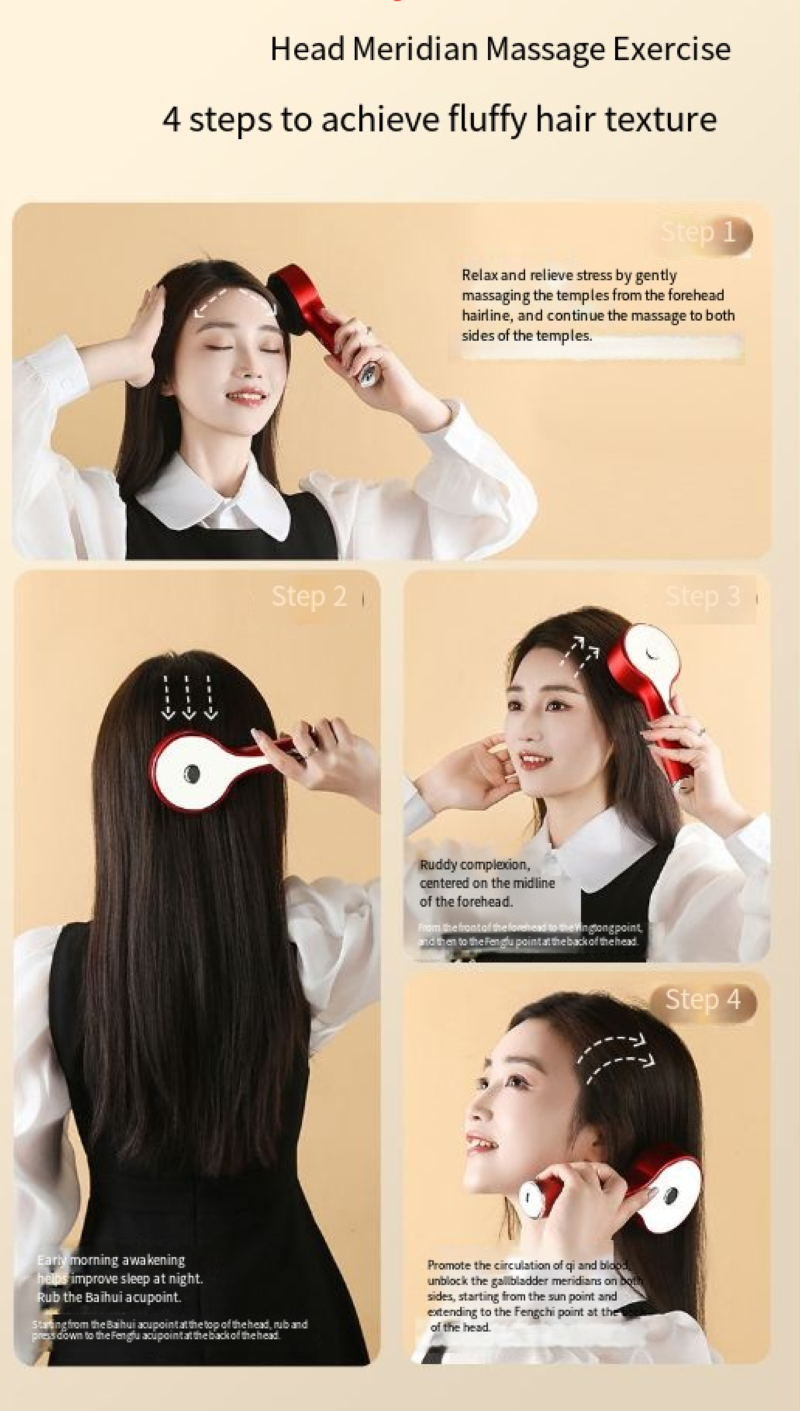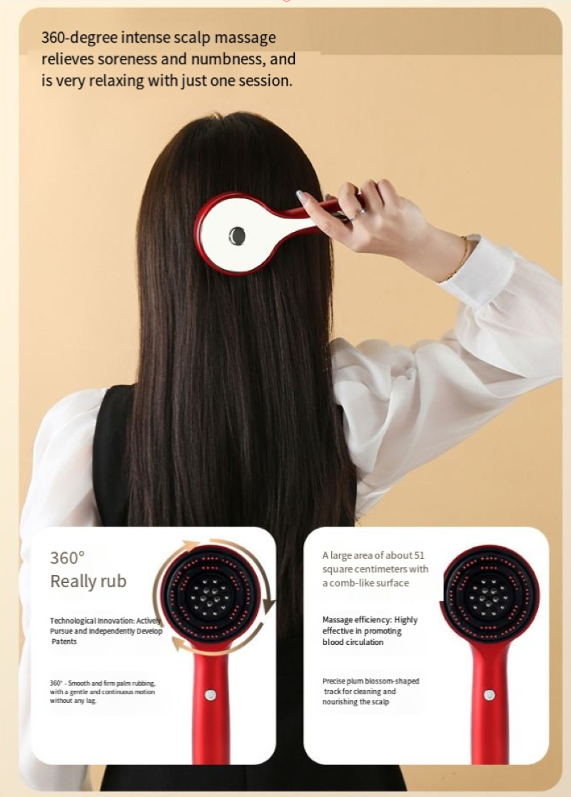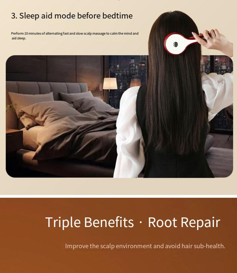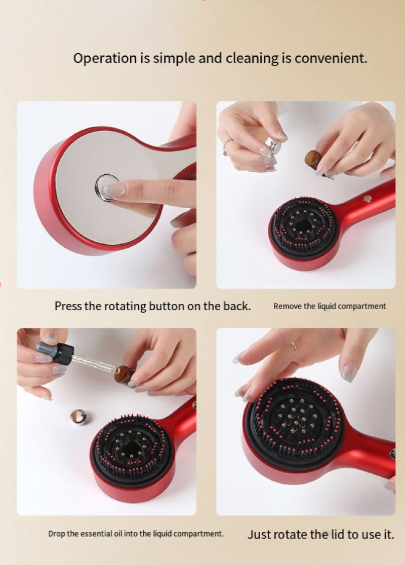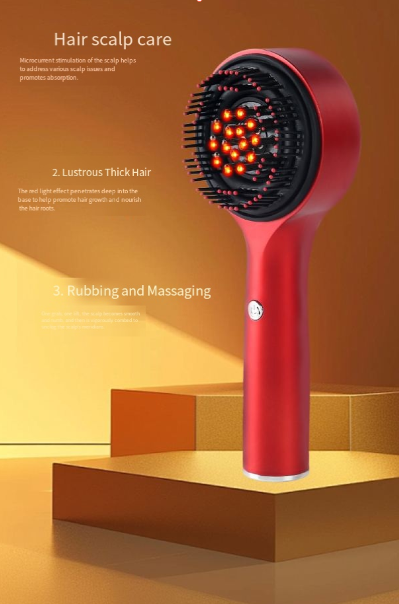 Você ainda se sente incomodado com couro cabeludo tenso, caspa e coceira no couro cabeludo? Você sente inveja da sensação de relaxamento do cuidado do couro cabeludo em salão? O pente multifuncional de massagem com luz vermelha está aqui, integrando cuidados com luz vermelha, massagem nas mãos semelhante à humana e design portátil. Pode ser chamado de "terapeuta particular para o couro cabeludo" e permite que você aproveite um spa de palmas em casa, despertando a vitalidade do couro cabeludo.