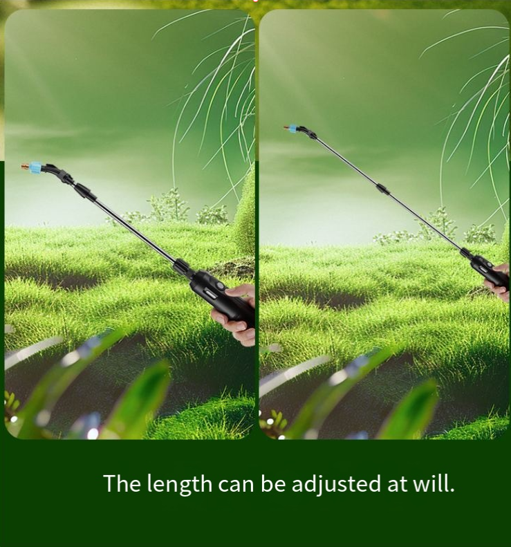 O que é mais atencioso é o design de poste longo ajustável, que pode ser ajustado livremente de acordo com as necessidades (até 80 cm de comprimento). Ao pulverizar pesticidas em árvores altas, você não precisa subir uma escada; estendendo o poste, você pode facilmente pulverizar; Ao operar em flores de baixo crescimento, encurte o poste para uma operação mais flexível. O design do botão na alça é simples e pode ser controlado com uma mão, tornando-o menos cansativo mesmo após longas horas de trabalho.