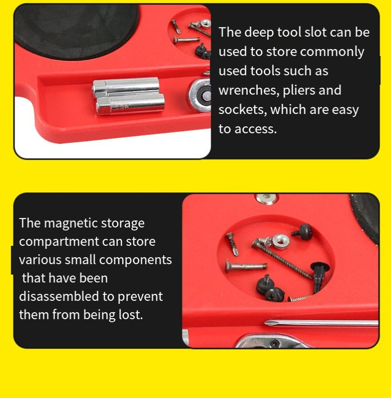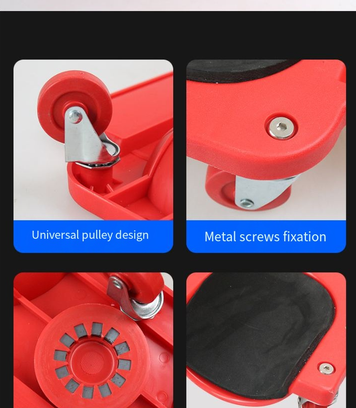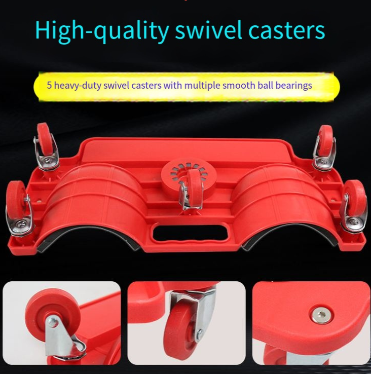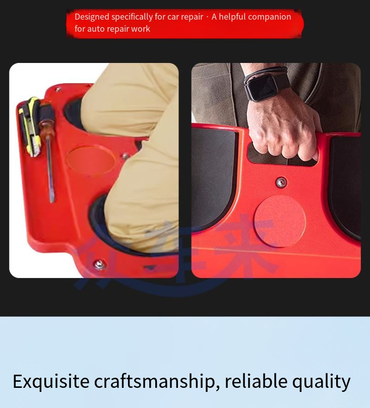 Os detalhes também são muito cuidadosos: as bordas da superfície da tábua são suavizadas para evitar arranhões nas roupas ou na carroceria do veículo; A cor principal vermelha é chamativa e durável, e não é fácil de perder no ambiente da oficina; O material das rodas universais é resistente ao desgaste e durável, não será danificado mesmo após uso prolongado, além de sua durabilidade suportar o uso frequente do equipamento.