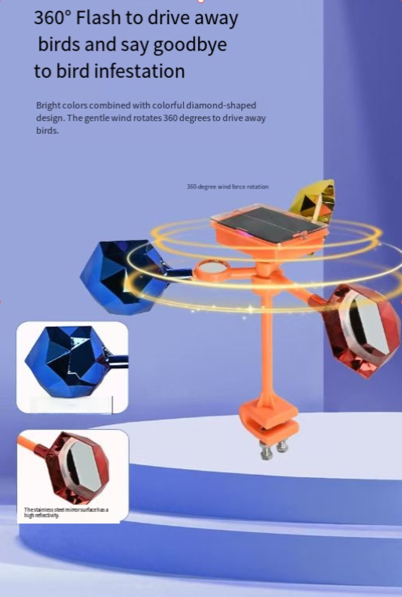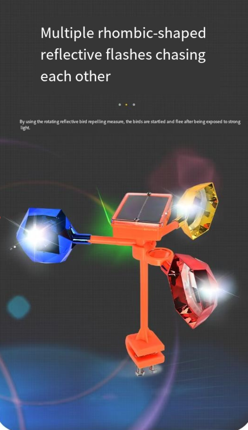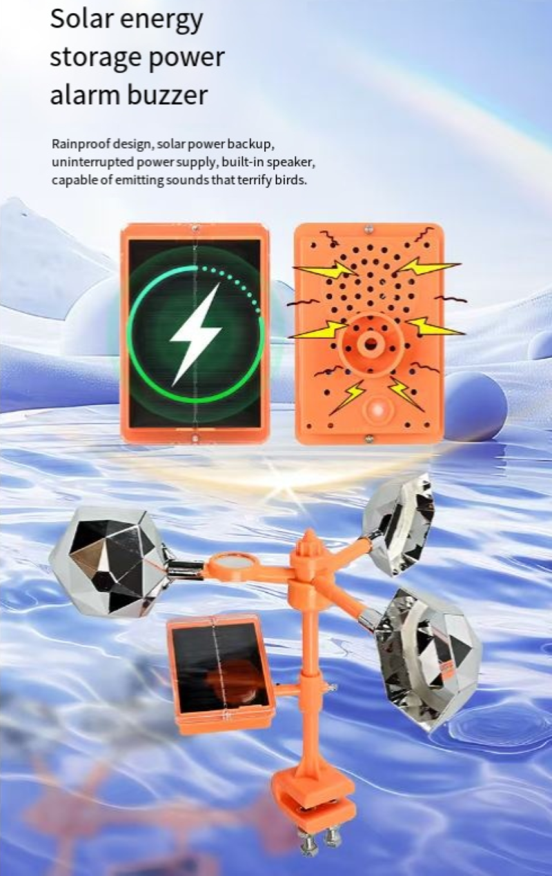 Ele utiliza tecnologia de estroboscópios laser multicoloridos de 360°, com luzes laser rotativas emitindo constantemente luz forte e mutável para simular a dissuasão dos inimigos naturais, fazendo com que as aves sintam medo e não fiquem quietas. Ao mesmo tempo, ele possui 60 tipos de sons de medo de pássaros, como os chamados de aves ferozes e os sons assustados de pássaros, estimulando multidimensionalmente os sentidos das aves, quebrando completamente sua "zona de conforto"; até mesmo os pássaros mais ousados evitam.