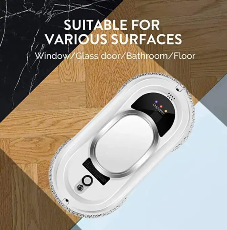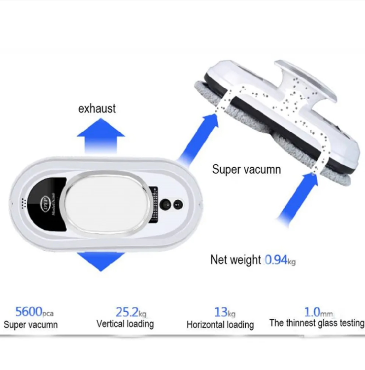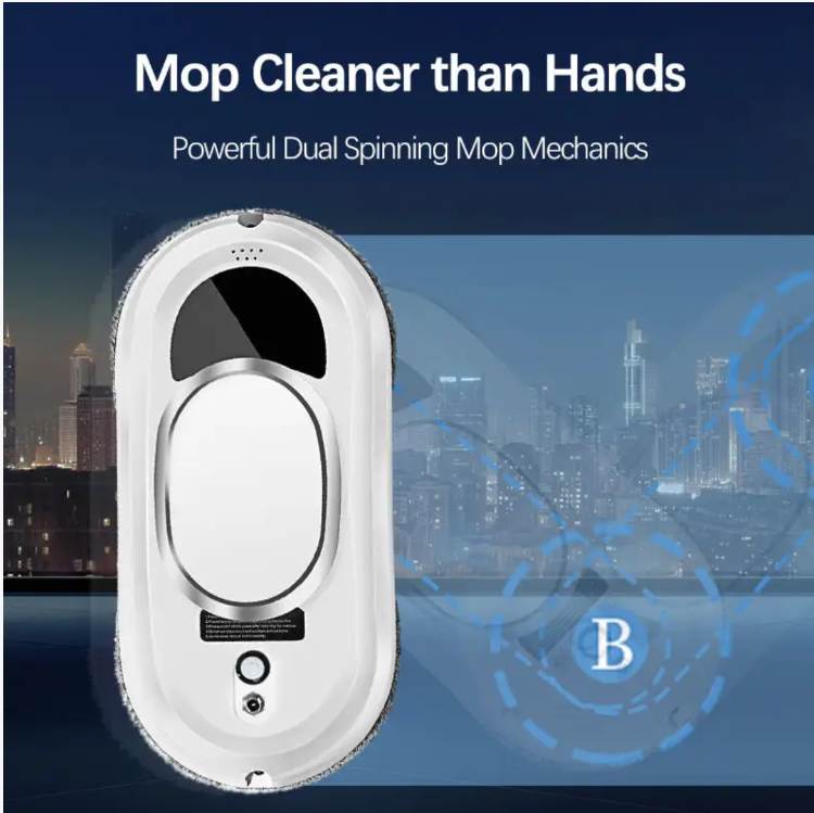 É o "terminador" das manchas de vidro, equipado com um sistema mecânico de esfregona rotativa dupla, combinado com uma poderosa força de sucção de 5600 Pa, assim como dar ao vidro um "spa profundo":