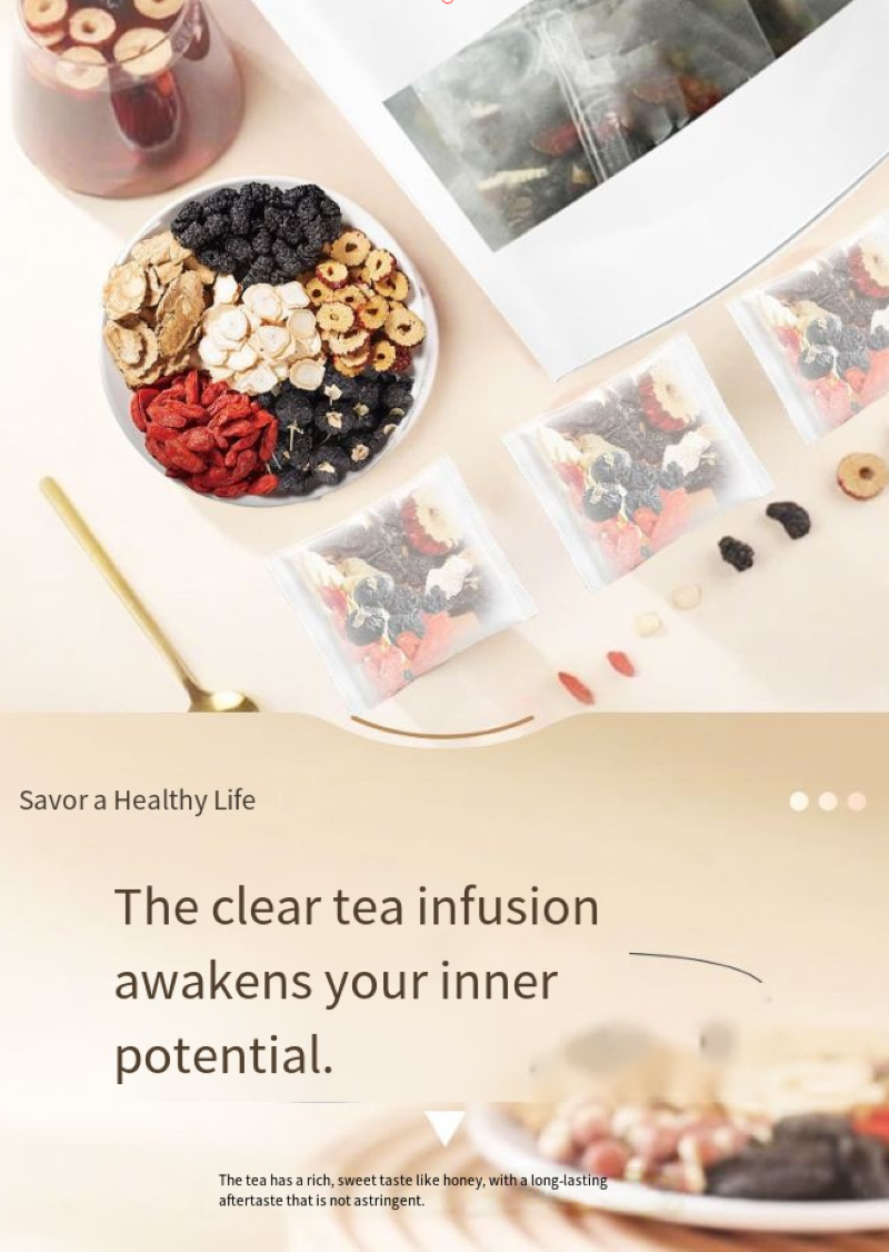 Usando saquinhos individuais de chá a vácuo, cada saquinho contém 12 saquinhos. Cada saco é equilibrado com precisão com uma combinação de ervas. O material do sachê de chá é respirável e ambientalmente correto, permitindo que a essência herbal seja totalmente liberada. É limpo e livre de impurezas. Basta abrir e preparar o preparo, sem precisar se preocupar em pesar e combinar. Seja durante os intervalos do trabalho, relaxando em casa ou viajando, basta levar um saco e preparar rapidamente uma xícara de chá nutritivo, tornando a nutrição parte da sua rotina diária.