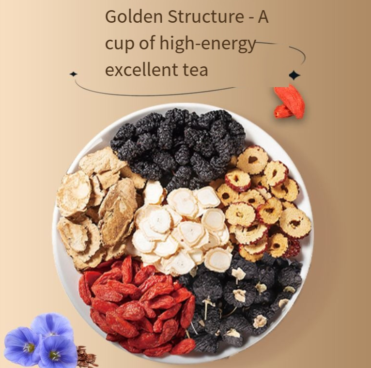 Selecionamos nove ingredientes naturais medicinais e comestíveis: bagas de goji, amoreiras, rehmannia, tâmaras vermelhas, longan, inhame, semente de jujuba, semente de lótus e alcaçuz. Cada ingrediente é cuidadosamente selecionado: as bagas de goji nutrem os rins e melhoram a visão, as amoreiras nutrem o yin e suplementam o sangue, a rehmannia tonifica o qi e nutre o yin. Combinados com tâmaras vermelhas e longan, aquecem o meio e tonificam o qi. Sementes de inhame e jujuba fortalecem o baço e nutrem o estômago, sementes de lótus nutre o coração e acalmam a mente, e alcaçuz harmoniza todos os sabores e trabalha juntos para alcançar tanto nutrição quanto suavidade. Não é secante nem oleoso, e pode ser consumido com segurança por pessoas de todas as idades, homens, mulheres e crianças.