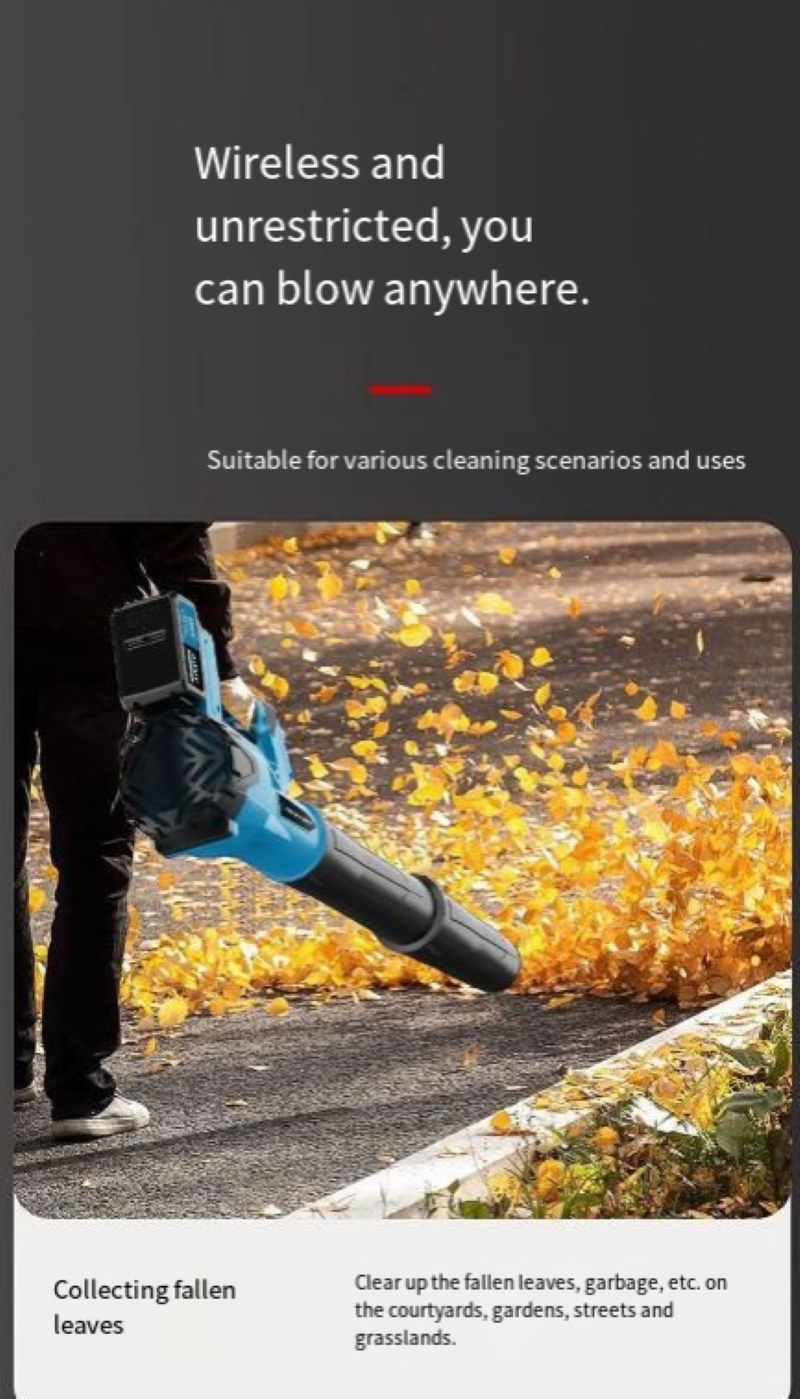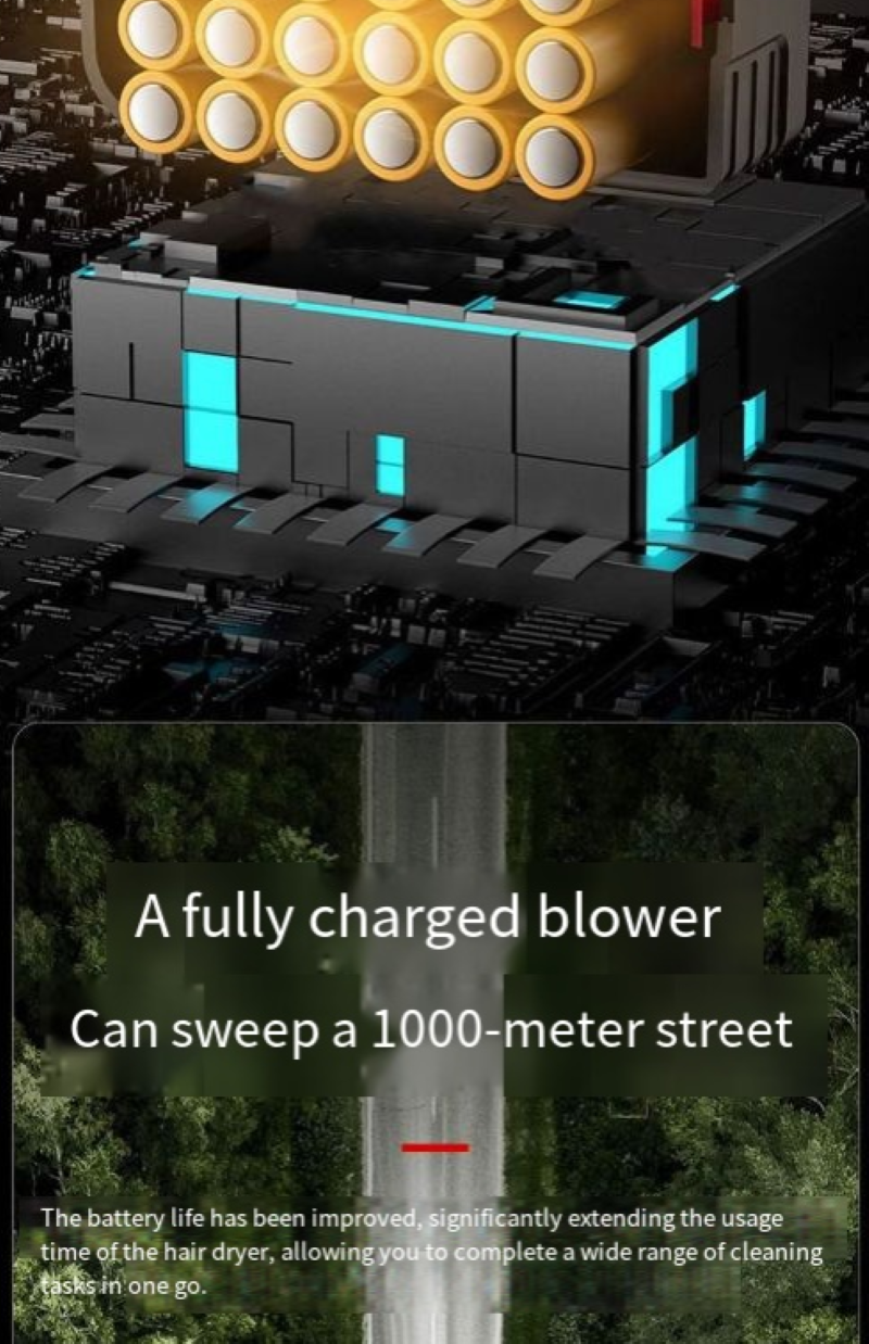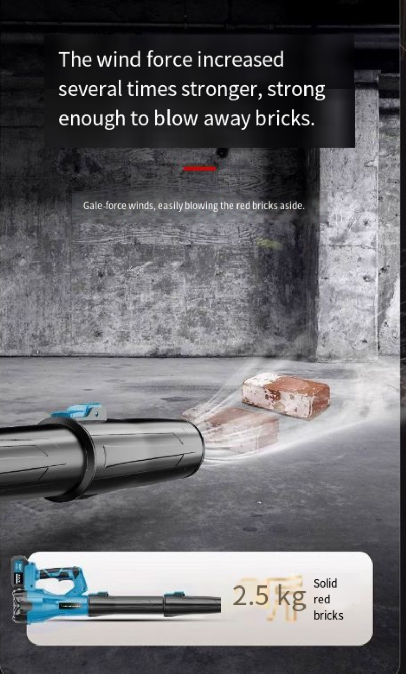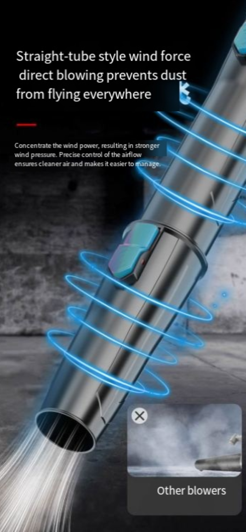 Equipado com um duto de ar de fluxo axial turboalimentado e um motor de cobre de alta velocidade de 10 convoluções, a energia eólica é tão forte que pode rivalizar com a força de um tufão de 14º nível. Ele pode varrer instantaneamente detritos, como folhas caídas, poeira e lascas de madeira. Ao limpar as folhas caídas no quintal, o trabalho que costumava levar meia hora agora pode ser concluído em apenas alguns minutos. Ao tirar o pó no canteiro de obras, mesmo o pó de cimento teimoso pode ser "varrido completamente". No inverno, soprar neve é ainda mais fácil - camadas espessas de neve podem ser "sopradas" em formas dispersas e derretidas.