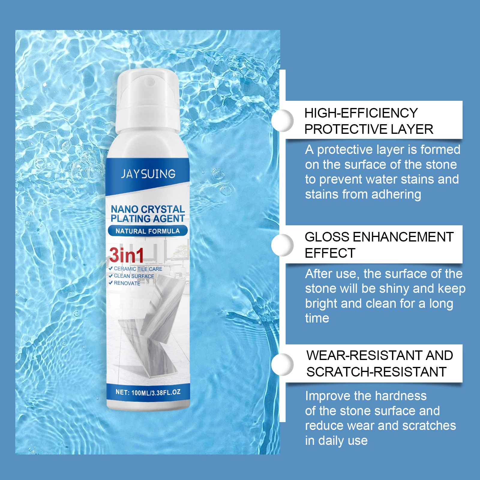 Não deixe que "superfícies de pedra que não podem ser limpas completamente" diminuam a qualidade da sua vida – use o agente de revestimento de nanocristais JAYSUING, dedique apenas alguns minutos para dar à pedra um "traje protetor escondido", deixando a cozinha e o banheiro sempre limpos e sem manchas, mantendo os móveis de pedra em condição impecável como se tivessem sido reformados recentemente. Economize nos custos de manutenção e aumente totalmente a sensação refinada da vida. Compre agora e torne as superfícies de pedra da sua casa "cada vez mais novas" – diga adeus ao cansaço de limpezas repetidas!