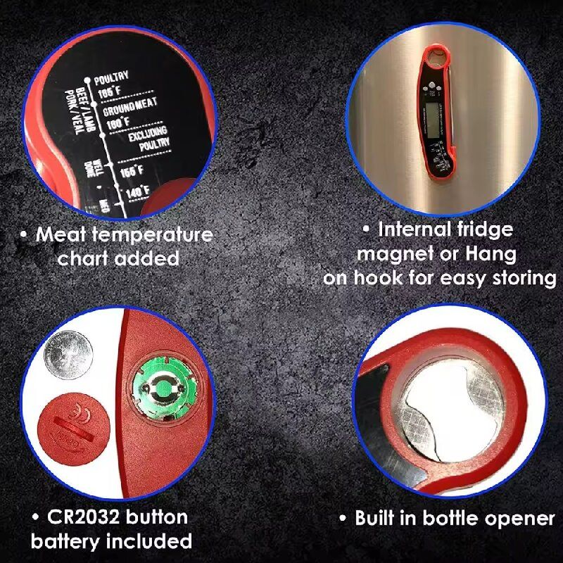 É até um "gestor atencioso" da vida: você pode não esperar que a parte de trás deste termômetro contenha um abridor de garrafas. Ao fazer um jantar com amigos, você não precisa correr atrás de ferramentas; O ímã dentro do corpo pode ser facilmente fixado na porta da geladeira quando usado, e você pode alcançá-lo olhando para cima durante o cozimento da próxima vez. A tela LCD retroiluminada pode mostrar claramente a temperatura mesmo no fim da noite, ao aquecer leite ou nas barracas de churrasco pouco iluminadas. A função de calibração garante que os dados nunca "desviem".