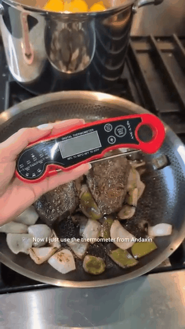 A sonda de 10 centímetros pode girar 180 graus, atingindo com precisão o centro do alimento ao assar e sendo facilmente inserida no fundo de uma garrafa de leite ao medir a temperatura do leite em pó; com uma faixa de medição ultra ampla de -50°C a 300°C, ele pode lidar com tudo, desde ingredientes congelados até sopas fervendo, e a tela pode ser alternada entre °C e °F com um único clique. Também pode travar em temperaturas extremas.