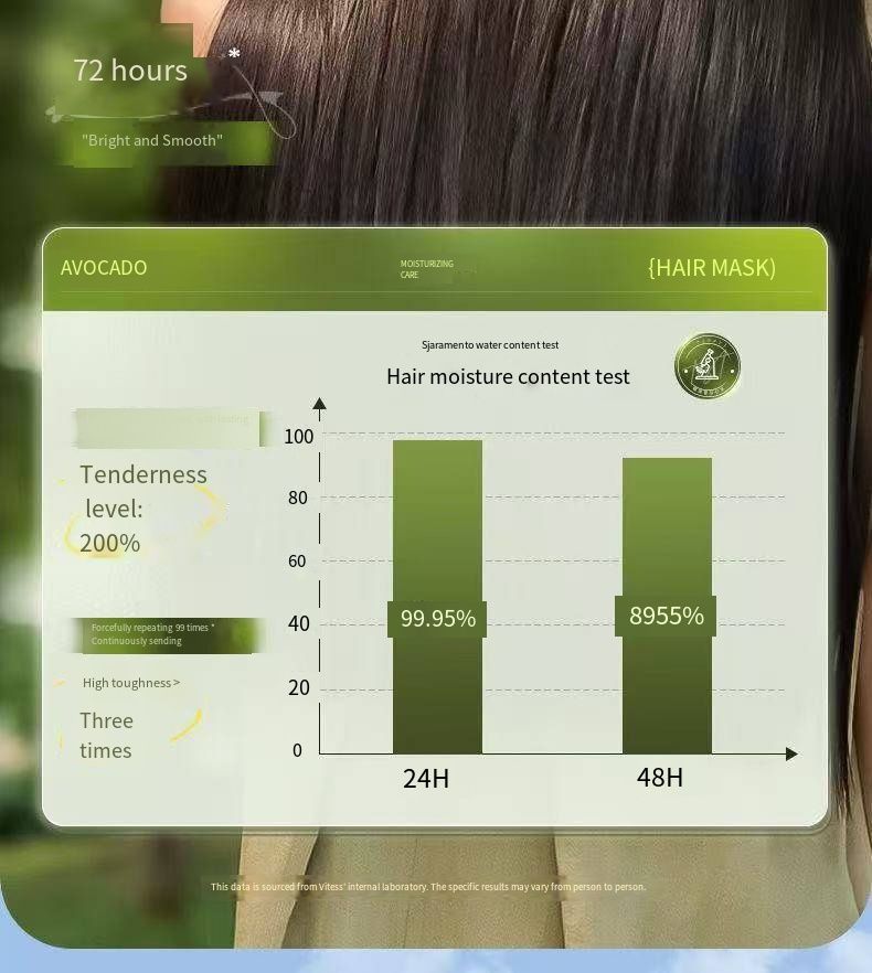 É um 3 em 1 potência: aroma em nível de fragrância, condicionamento profundo de salão e correção de frizz — tudo em um só pote. Seu ingrediente principal, a manteiga de abacate, é repleto de proteínas importadas da França e aminoácidos de colágeno, que acalmam os mosquitos 3 vezes mais rápido e penetram nas mechas em apenas 30 segundos. Veja como é fácil: secar o cabelo com toalha até ficar úmido, passar a máscara (pule o couro cabeludo), massagear por 5 minutos, enxaguar — e de repente, seu cabelo fica tão liso que o pente desliza da raiz até a ponta sem resistência. Nem mesmo secar com secador vai trazer o frizz de volta.