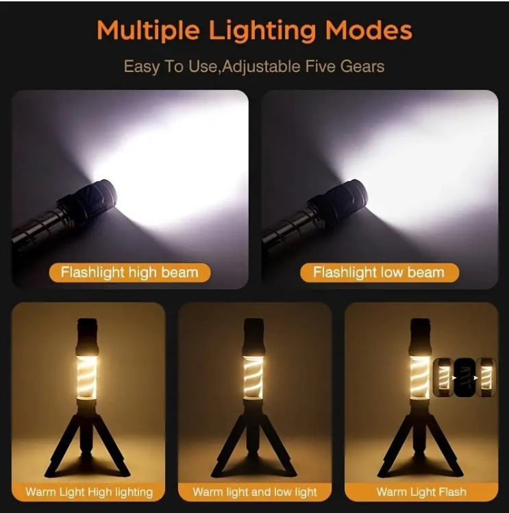 Cenários de acampamento: Pode ser pendurado no topo da barraca como uma lâmpada de atmosfera, colocado na mesa do acampamento como uma barreira repelente de mosquitos, segurado na mão como uma lanterna para pathfinding;