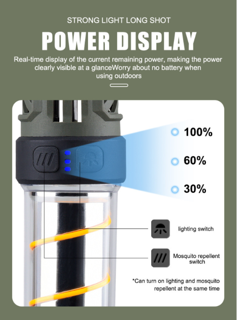 Cenários diários: Pode ser usado como uma luz de emergência em casa quando a energia está fora, como um ajudante repelente de mosquitos para piqueniques ao ar livre, uso multiuso, excelente relação custo-benefício.