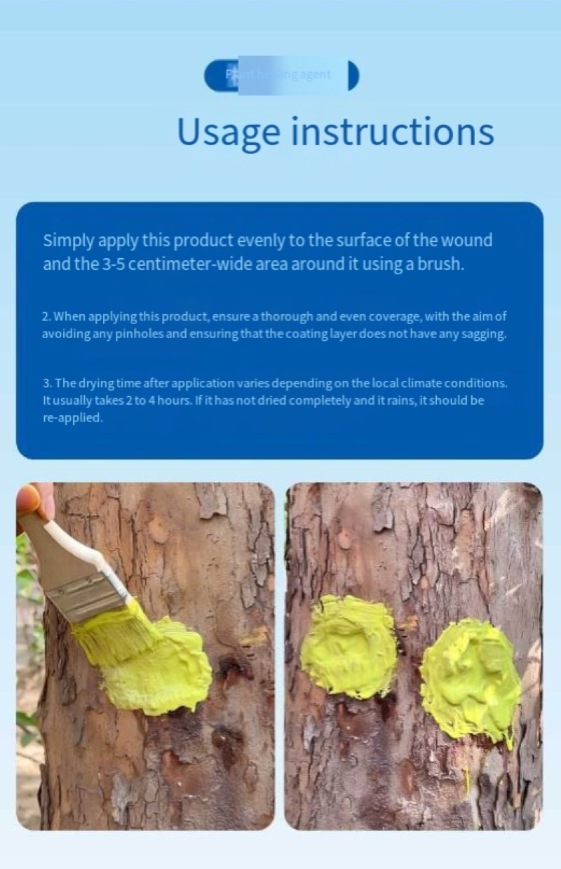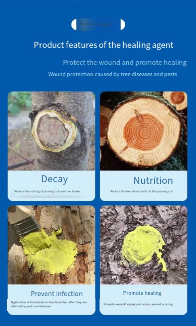 Este agente curativo de plantas é um produto inovador especialmente desenvolvido para promover a cicatrização de feridas de plantas. Seja poda, modelagem, enxertia, rejuvenescimento de árvores antigas, casca danificada ou ferimentos causados por transplante de árvores ou doenças e pragas, pode desempenhar um papel excepcional na cura e proteção.