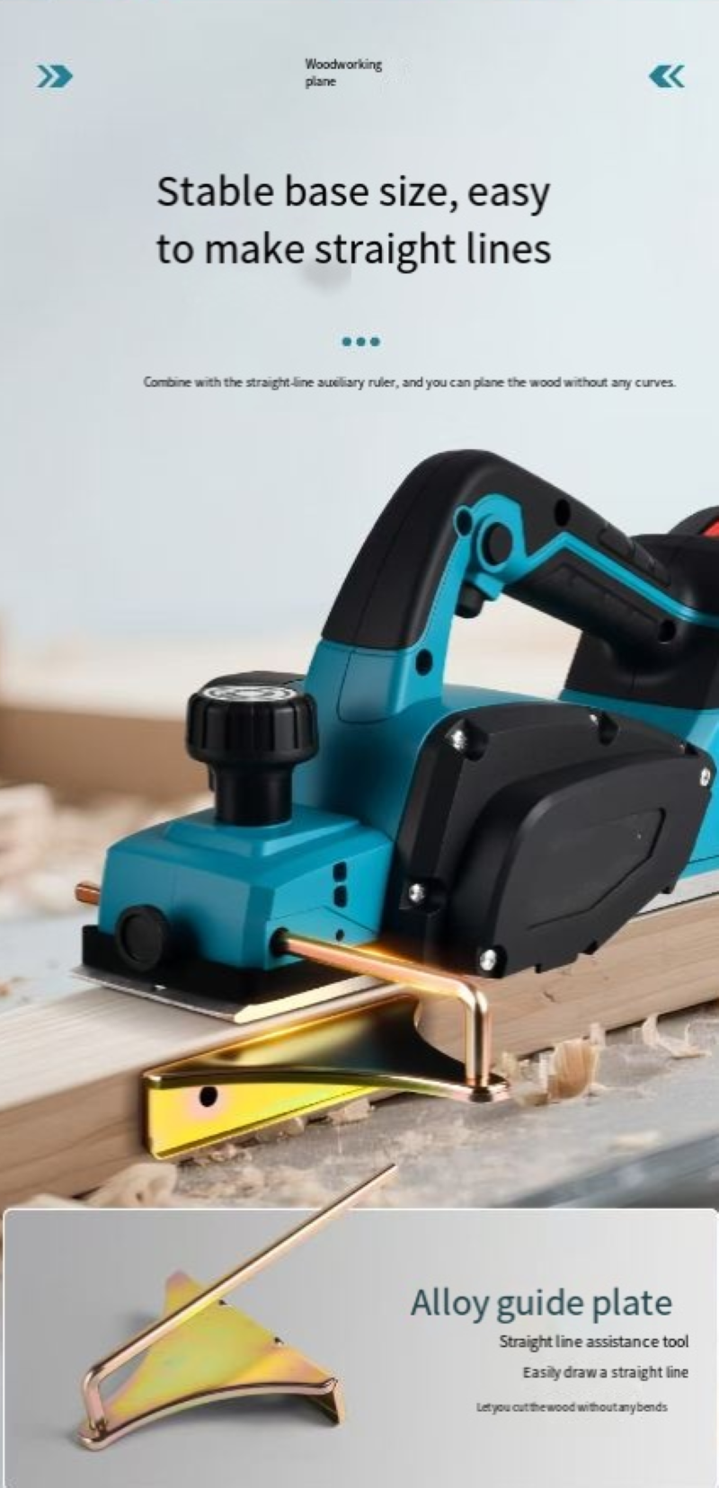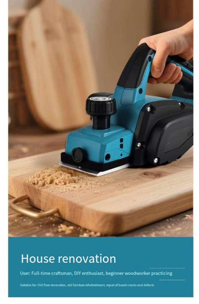 Múltiplos cenários, uma máquina: Esta plaina recarregável de madeira a bateria de lítio é adequada para diversos cenários, seja uma oficina profissional de marcenaria, um local de decoração residencial ou um estúdio de criação DIY, ele pode exercer plenamente suas poderosas funções.