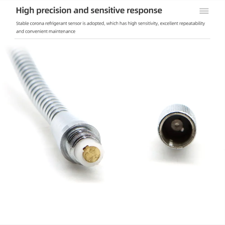 It is equipped with a highly sensitive sensor, which can accurately detect various common refrigerants such as R22 and R134a, even the slightest leakage can be quickly captured. The flexible probe rod can be flexibly inserted into the gaps of equipment, pipe joints and other concealed areas for comprehensive leakage point detection, avoiding the omission of hidden dangers due to detection blind spots.