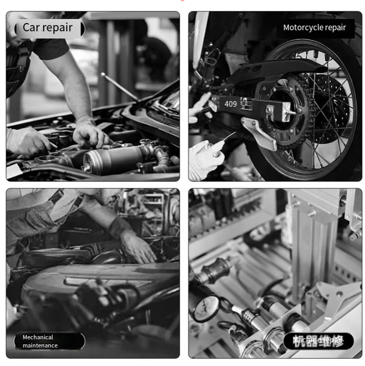 Os cenários aplicáveis são extremamente amplos: para oficinas profissionais de reparo automotivo, é o "equipamento padrão" para melhorar a eficiência e a qualidade do serviço, podendo responder rapidamente a diversas necessidades de reparo dos veículos do cliente; para proprietários de carros faça-você-mesmo, pode realizar manutenção simples e pequenos reparos com falhas em casa, economizando altos custos de mão de obra; Mesmo em reparos de máquinas agrícolas, manutenção de equipamentos e outros cenários, a versatilidade desse kit de ferramentas também pode ser muito útil.