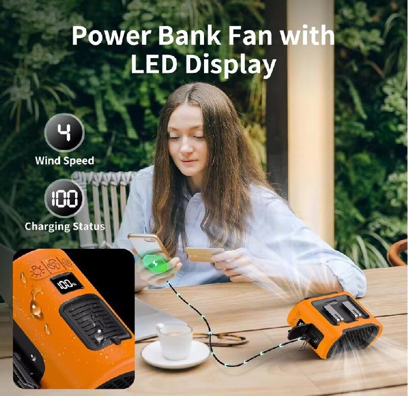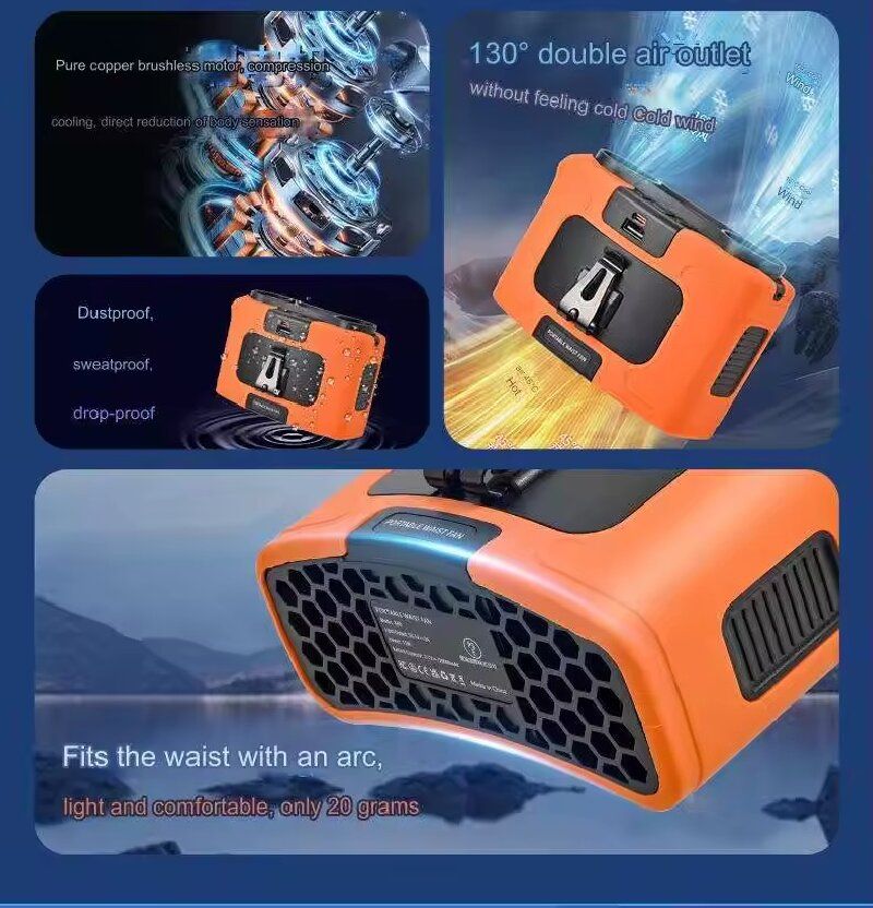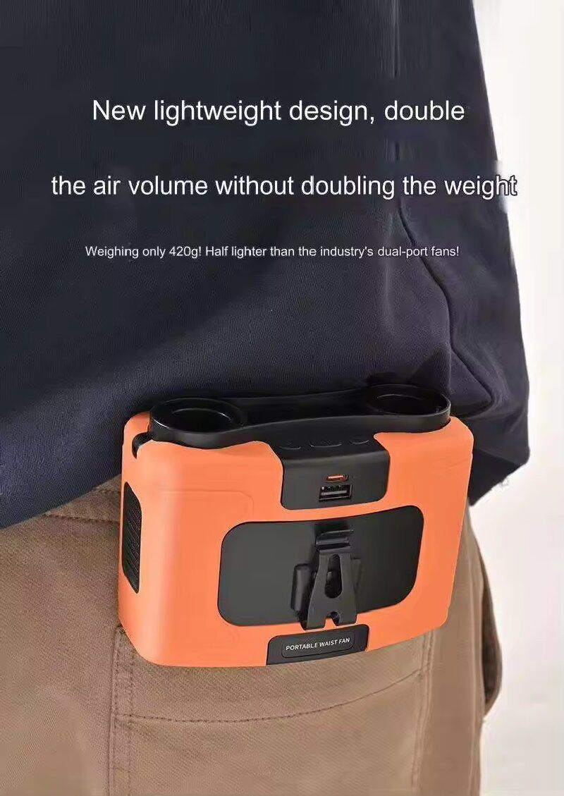 Este ventilador portátil montado na cintura é um excelente dispositivo de resfriamento para ambientes quentes. Com um design leve de apenas 420g, tem metade do peso dos ventiladores duplos padrão da indústria, mas pode dobrar o volume de ar. Ele usa um motor brushless de cobre puro com uma alta velocidade de 14600 RPM, com turbinas duplas e aberturas duplas, uma distribuição de ar grande angular de 130 °, uma distância de entrega de ar de 8.2 pés, permitindo que trabalhadores da construção civil, entregadores, agricultores e entusiastas do ar livre digam adeus ao suor profusamente no calor escaldante. Ele também possui recursos à prova de poeira, suor e queda, é equipado com iluminação de emergência LED SOS, possui função de carregamento de bateria e display LED de quatro velocidades. Ele serve como uma ferramenta de resfriamento e um excelente auxiliar de emergência para quem está de plantão e ama o ar livre, trazendo resfriamento duplo e tranquilidade no verão sufocante.