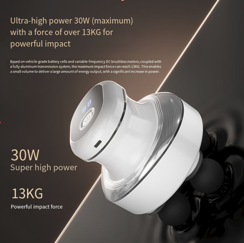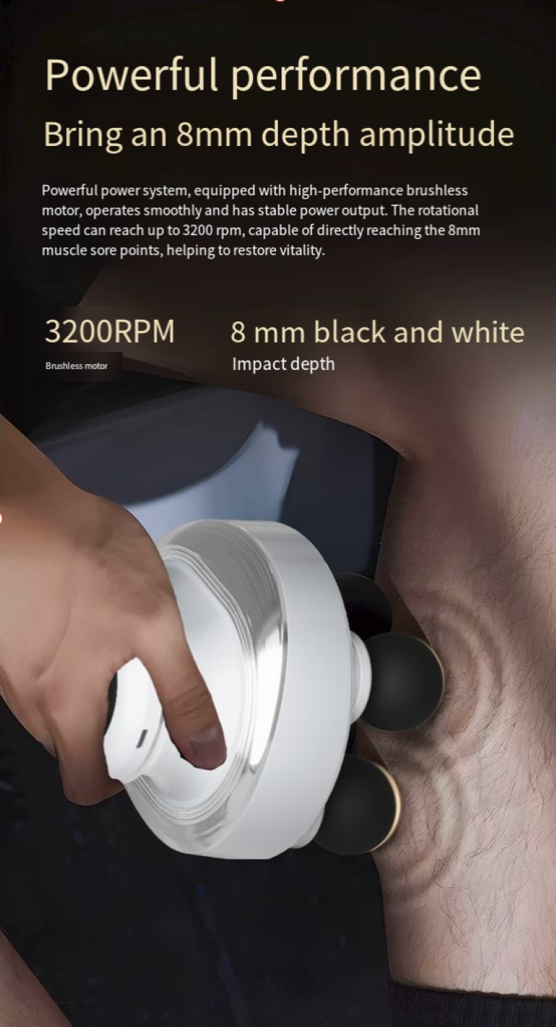 Força mais profunda: Os motores de acionamento independentes fornecem uma vibração estável de 120-2100 vezes por minuto, permitindo transições suaves de toques suaves para batidas profundas, e podem eliminar com precisão o acúmulo de ácido lático após o exercício e os nódulos musculares formados por ficar sentado por muito tempo;