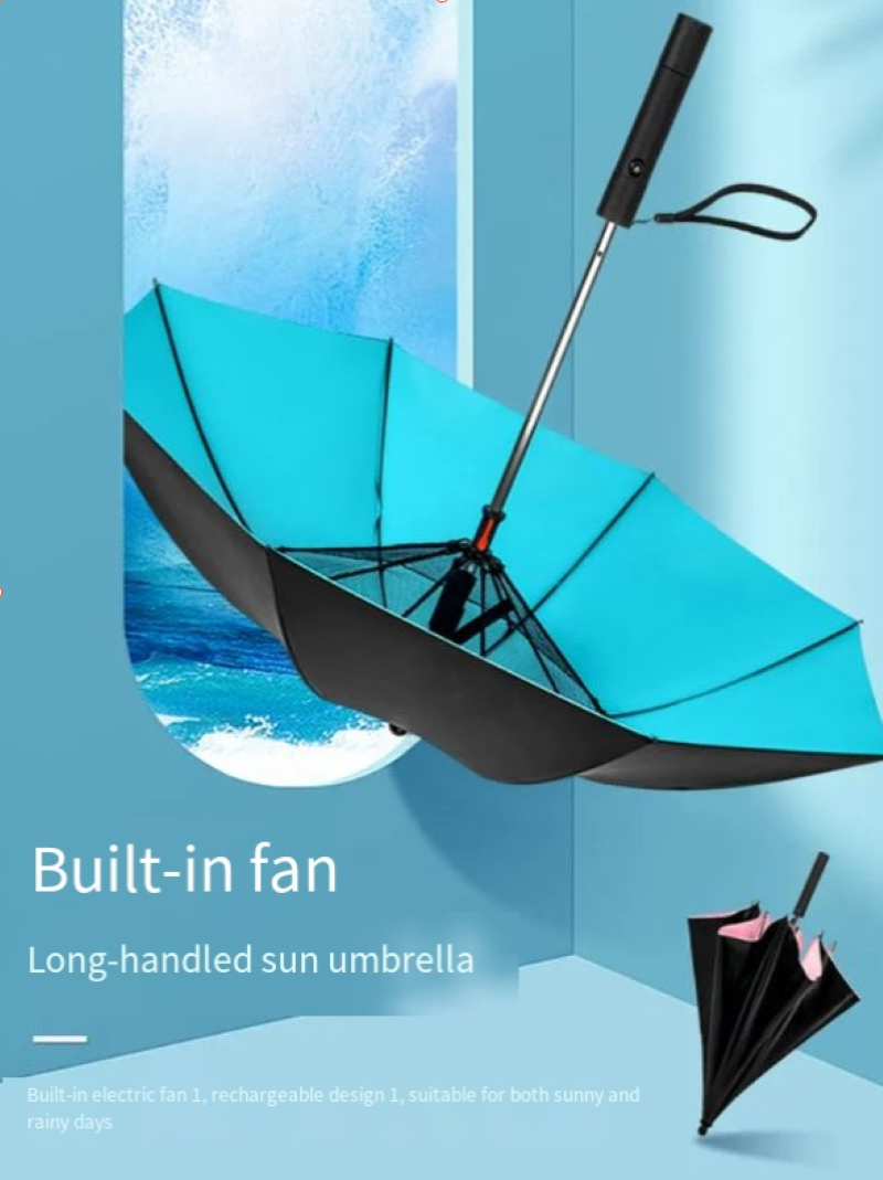Guarda-sol Recarregável com Ventilador: Proteção Dupla de Protetor Solar & Resfriamento para um Verão RefrescanteVocê ainda se incomoda com o sol escaldante e o entupimento no verão? Este guarda-sol recarregável alimentado por ventilador é como uma "estação de resfriamento móvel", alcançando proteção solar e resfriamento de uma só vez.Adota tecido de vinil preto que bloqueia efetivamente os raios ultravioleta, construindo uma "barreira de proteção solar" para você. Equipado com um ventilador embutido recarregável, ele instantaneamente oferece uma brisa fresca uma vez ligado, alcançando resfriamento físico enquanto sombreia, fazendo você se sentir confortável mesmo sob o sol escaldante.Em termos de design, equilibra portabilidade e duração da bateria. Ele pode ser facilmente dobrado e armazenado em uma bolsa, e o ventilador tem bateria de longa duração após o carregamento. Seja o sol escaldante durante o trajeto ou a luz solar intensa durante as férias na praia, ele pode dissipar o entupimento e resistir aos raios ultravioleta para você, tornando as viagens de verão frescas e livres a partir de agora.