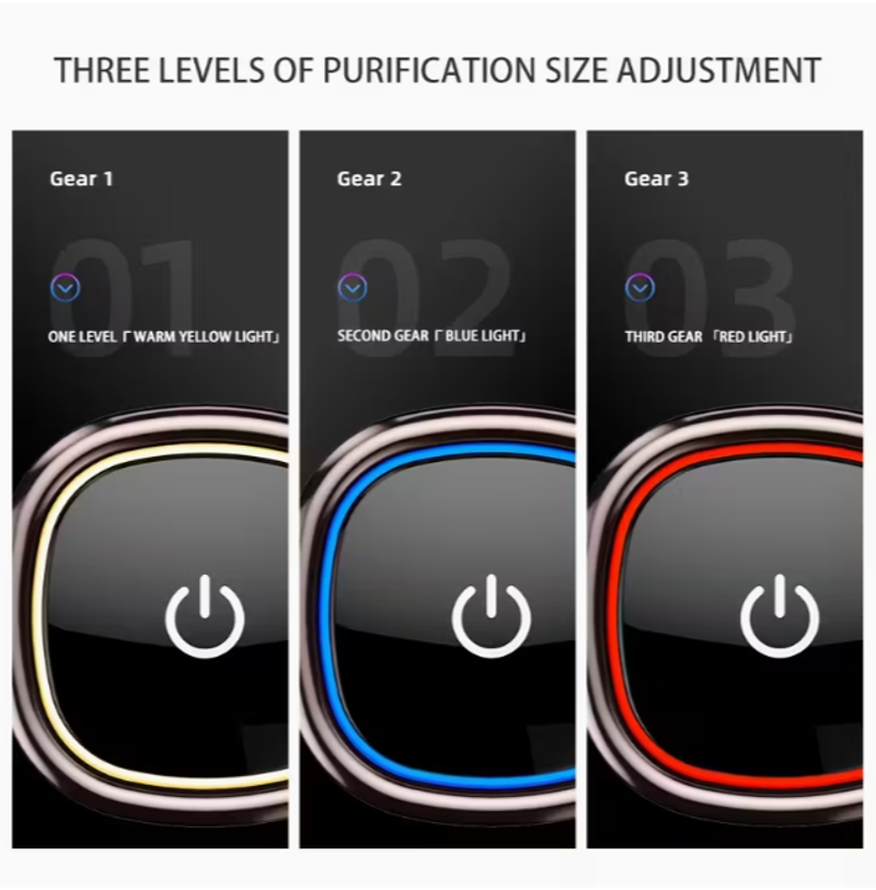 A purificação do ar também pode ser cheia de senso técnico! Este purificador de ar montado em veículo possui um corpo de metal para uma aparência premium, tecnologia de purificação de íons negativos eficiente e silenciosa e três modos comutáveis com um botão. Colocado no carro, não é apenas um ajudante purificador de ar capaz, mas também um item de moda que aprimora seu estilo interior. A cada respiração, você pode sentir o cuidado duplo de tecnologia e qualidade.