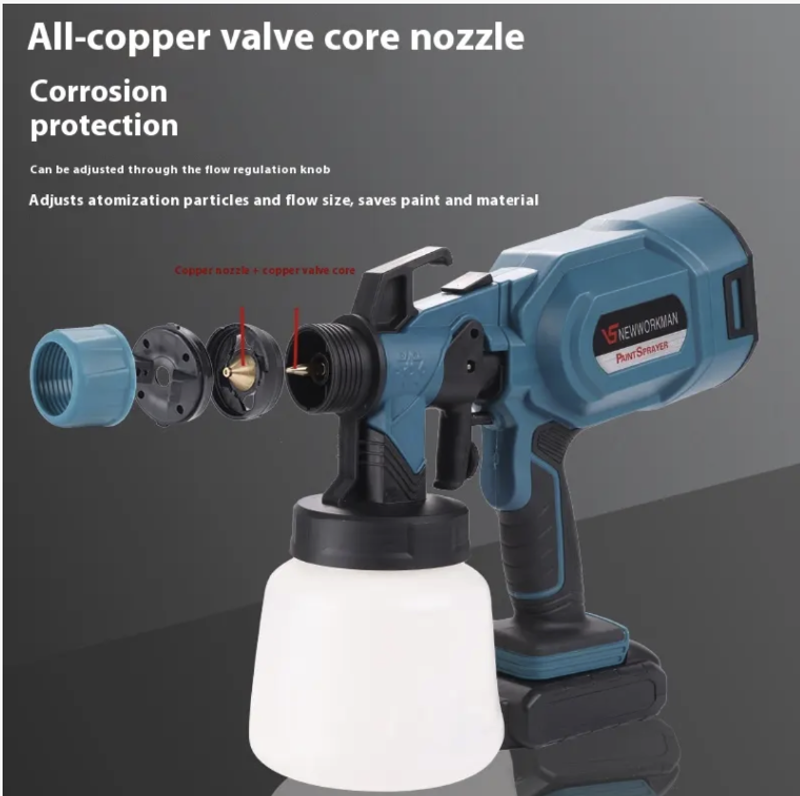 No campo das operações de pintura, as ferramentas tradicionais de pintura em spray costumam ser incomodadas por problemas como restrição por cabos e falta de energia suficiente. Esta pistola de pulverização alimentada por bateria de lítio, com suas principais vantagens de "acionamento por bateria de lítio + design inteligente + compatibilidade universal", traz uma solução totalmente nova para cenários como marcenaria, decoração de casa e pintura industrial.
