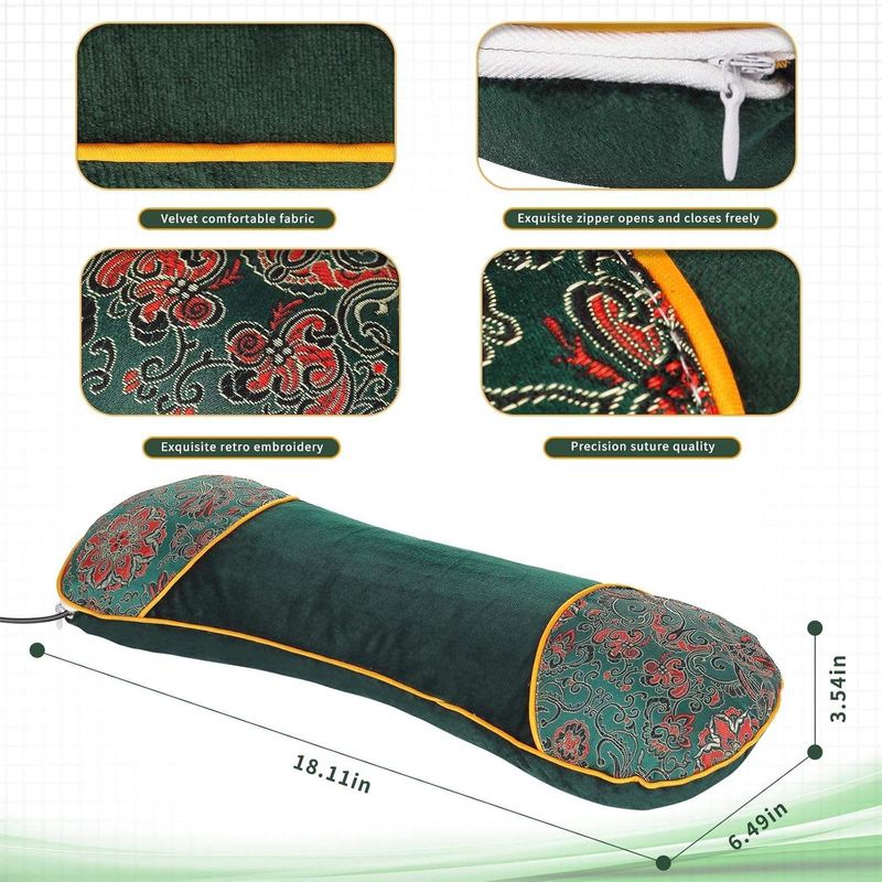 3. Artesanato Antigo + Tecnologia Moderna: O tecido de brocado tradicional é requintado e texturizado, com um módulo de aquecimento elétrico embutido, combinando compressa quente e suporte da coluna cervical. Basta colocá-lo sob o pescoço em casa ou no escritório e iniciar imediatamente um "SPA relaxante" para o pescoço.