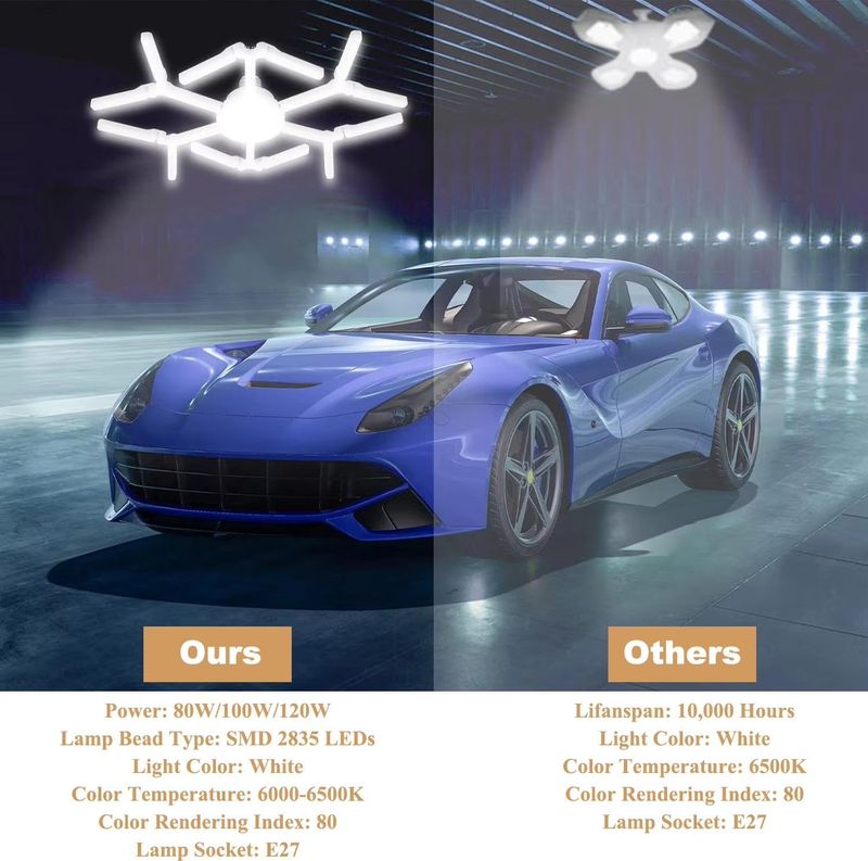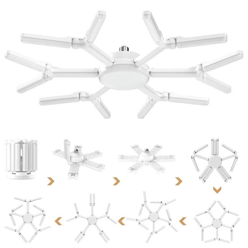 Design exclusivo Spider Deformable, cada um dos painéis de 6LED pode ser ajustado para cima e para baixo 90 °. O design exclusivo de iluminação de garagem LED de grande angular pode ter uma curva de distribuição de iluminação LED de garagem perfeita de acordo com seu ajuste, o que iluminará um maior