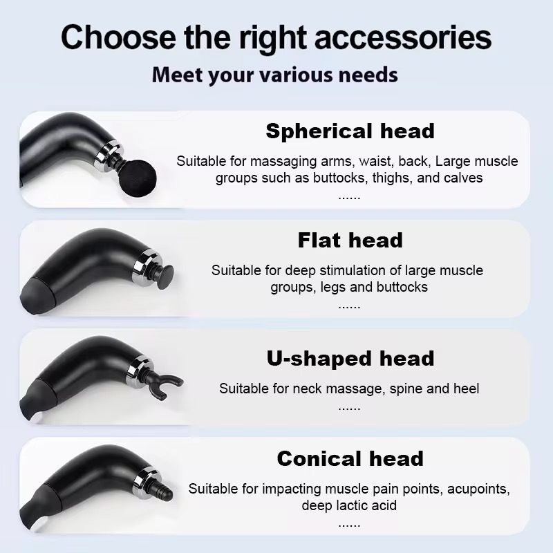 É equipado com tecnologia de regulação de energia inteligente e vários níveis de intensidade são adequados para diferentes grupos musculares: os funcionários de escritório podem usá-lo para relaxar os ombros e o pescoço e evitar a fadiga de ficar sentado por muito tempo; Os entusiastas do esporte confiam nele para aliviar a fadiga muscular e acelerar a recuperação. É combinado com vários tipos de cabeças de massagem: a cabeça esférica dispersa nódulos, a cabeça chata acalma grandes áreas de músculos e a cabeça em forma de U se concentra nos pontos de acupuntura dos ombros e pescoço... Cada ponto dolorido é direcionado com precisão.