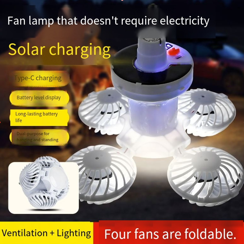 Luz de ventilador dobrável solar: Cool sem eletricidade, rei completo da iluminação e ventilação ao ar livre