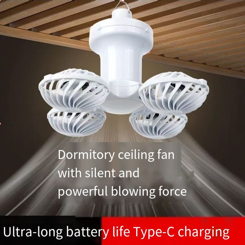 - Dobrável e portátil: As quatro pás do ventilador podem ser dobradas. Quando armazenado, é tão pequeno quanto a palma da sua mão e pode ser facilmente embalado em uma bolsa ou gaveta de acampamento. Quando desdobrado, pode se tornar instantaneamente uma "posição fria", com um ajuste flexível de ângulo de 90° para sopro de ar e iluminação mais íntimos.