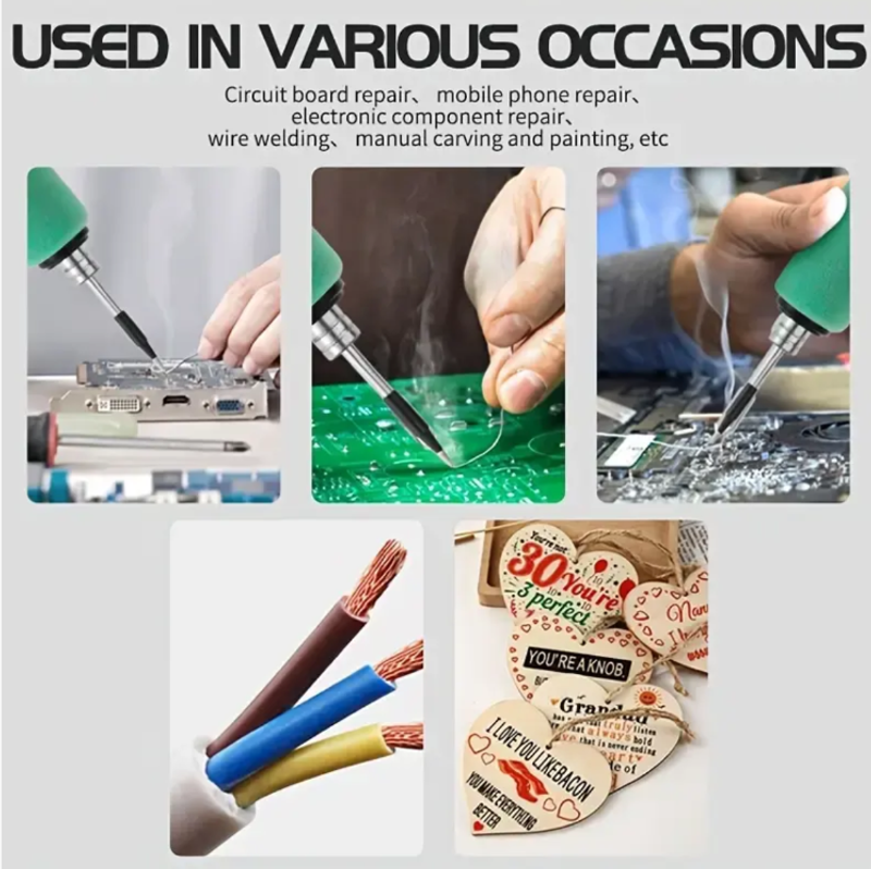 É também um "defensor ferrenho" da qualidade, usando núcleos de aquecimento de alta qualidade, que aquecem rapidamente, têm alta eficiência térmica e têm uma longa vida útil. A solda derrete rapidamente e o processo de soldagem é suave, sem falhas. O suporte de ferro de solda incluído, pontas de ferro de solda sobressalentes e esponja de limpeza tornam a operação de soldagem mais padronizada e profissional. Desde o reparo preciso de placas-mãe de telefones celulares até a montagem criativa de circuitos de aeromodelos e a soldagem de reforma de rádios antigos, ele pode lidar com todas as tarefas com precisão, tornando cada ponto de solda uma prova de qualidade.