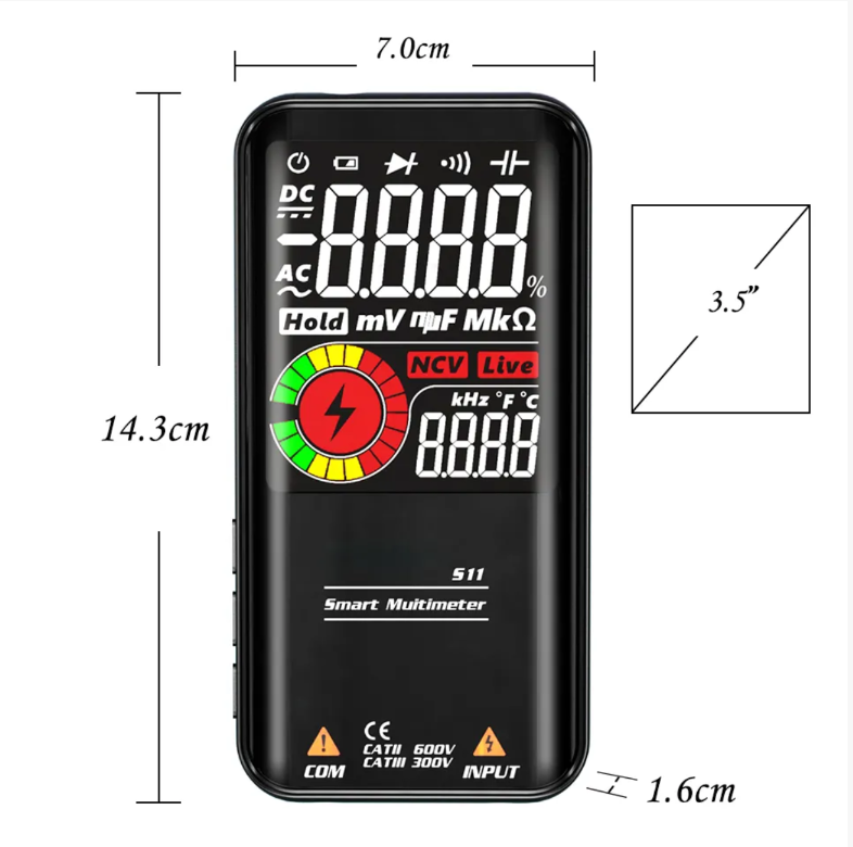 É equipado com uma tela colorida de alta definição EBTN de 3,5 polegadas, quebrando a limitação tradicional de "tela pequena e tela embaçada" de dispositivos multímetros: barras de progresso de tensão, frequência e quantidade analógica podem ser exibidas simultaneamente, com valores numéricos grandes e claros. Mesmo em condições de iluminação complexas durante a manutenção, os dados podem ser lidos rapidamente. A tela colorida também apresenta a tendência de mudanças de parâmetros elétricos por meio de barras analógicas de três cores, transformando "números abstratos" em "dinâmica visual", possibilitando que iniciantes entendam rapidamente the circuit status.