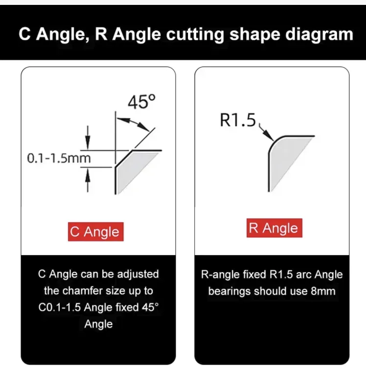 É adotada a cabeça de corte de aço de tungstênio de duas arestas, combinada com o design do rolamento auxiliar. A eficiência de corte é maximizada, o chanfrado é afiado e liso, e as barbantes são completamente eliminadas. Além disso, possui cinco funções de ajuste. O ângulo C pode ser livremente alternado de 0,1 mm para 1,5 mm, e o ângulo R pode ser livremente alterado a partir de R1,5. Pode atender às diferentes requirements for chamfer accuracy.