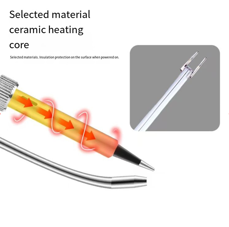 É o "líder em velocidade de aquecimento", usando um núcleo de aquecimento cerâmico, que aquece de forma rápida e precisa, e pode ajustar a temperatura de acordo com os requisitos de soldagem. Ao lidar com componentes eletrônicos precisos, pode evitar danos aos componentes a uma temperatura adequada; Ao manusear grandes juntas de solda, ele pode fornecer rapidamente calor suficiente para garantir que a solda derreta totalmente e as juntas de solda estejam cheias. O design do interruptor torna a operação mais conveniente e o ritmo de soldagem está sob seu controle.