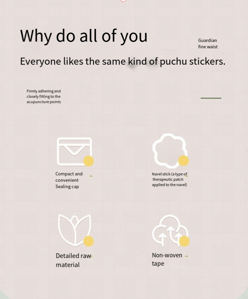 When using it, simply stick it on the abdominal acupuncture points. There is no need to sweat, exercise, or deliberately diet. Whether it's in the afternoon after a long work session, at night while watching TV, or during deep sleep, the natural energy of lotus leaf and mugwort can be continuously released, helping you break down fat, reduce edema, and promote circulation. You can quietly move towards a slender figure in the fragmented moments of drinking coffee, reading picture books, etc.