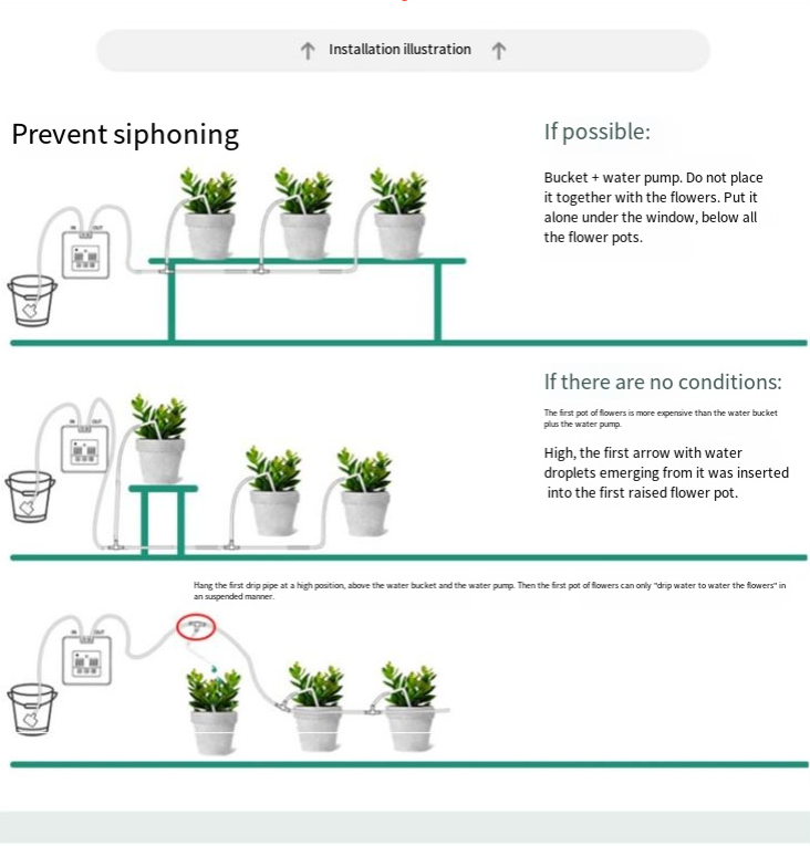 A instalação e o uso são extremamente simples: conecte o cano de água e as cabeças de irrigação por gotejamento conforme as instruções e os posicione de forma flexível conforme a posição da planta. Até iniciantes conseguem dominá-lo facilmente. O cano de água é durável e resistente ao sol e à chuva; As cabeças de irrigação por gotejamento são pequenas e ocultas, sem estragar a paisagem vegetal verde. Seja você um trabalhador de escritório ocupado ou um entusiasta de viagens que adora cultivar plantas, ele pode se tornar seu "assistente de cultivo de plantas".