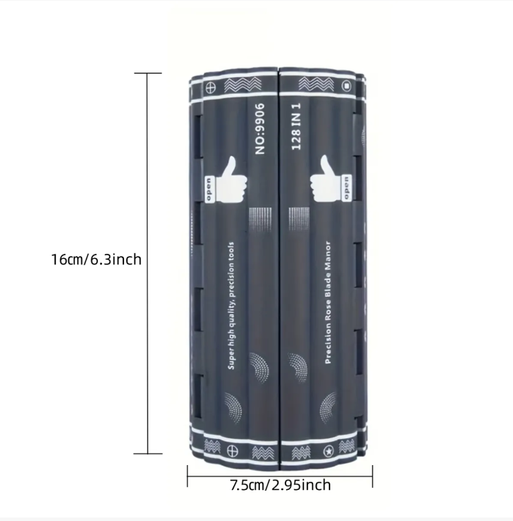 Seu design é simples e prático. A caixa cilíndrica de armazenamento não só economiza espaço, como também pode ser facilmente colocada em gavetas ou caixas de ferramentas. Ao abrir a caixa de armazenamento, 128 bits de tamanhos diferentes estão organizados cuidadosamente, variando desde cabeças cruzadas e planas comuns até cabeças precisas de cinco pontas, em formato de Y e até especiais triangulares e hexagonais internas, cobrindo 99% dos cenários de reparo do dia a dia.