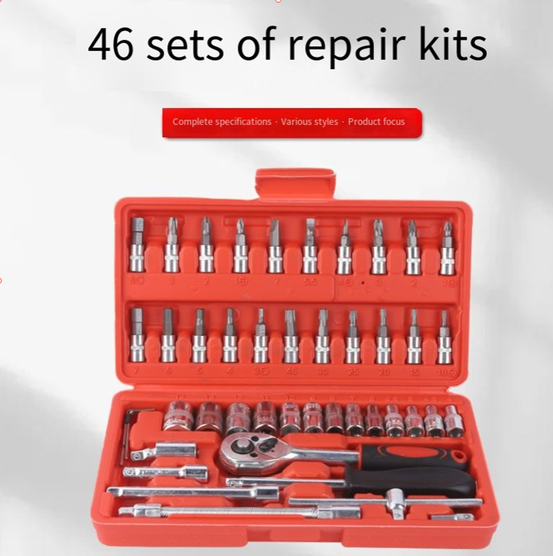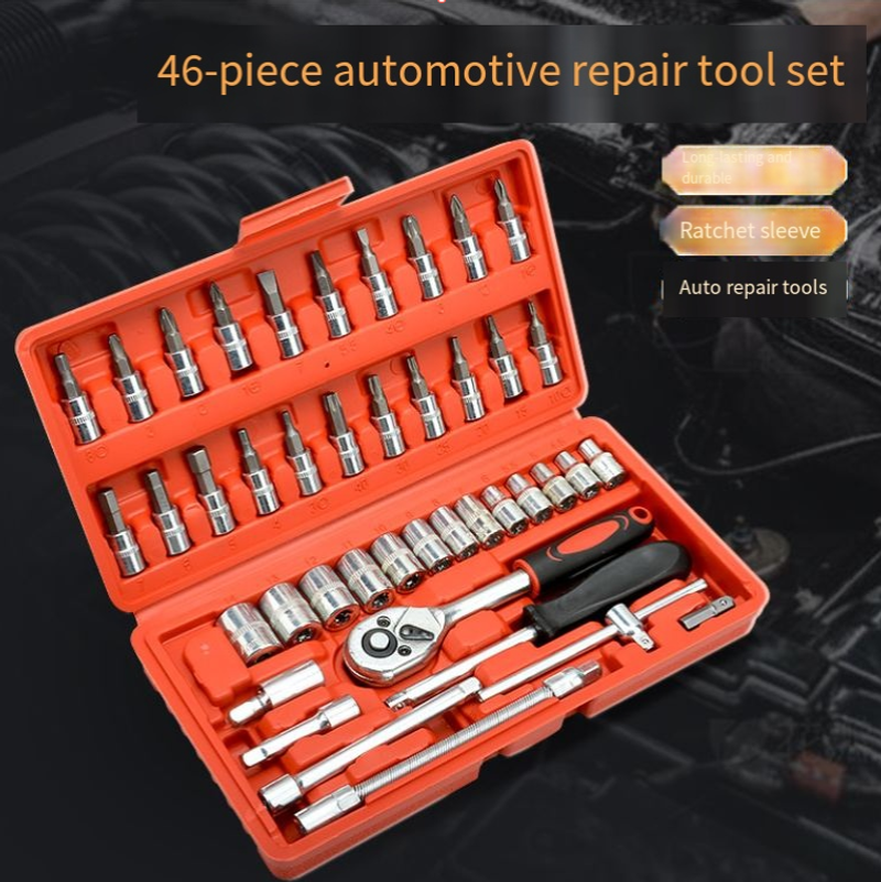 Kit de Ferramentas "Tudo-em-Um" para Reparo Automotivo! Conjunto de chave combinada multifuncional com catraca de 46 peças, indispensável para manutenção de veículos