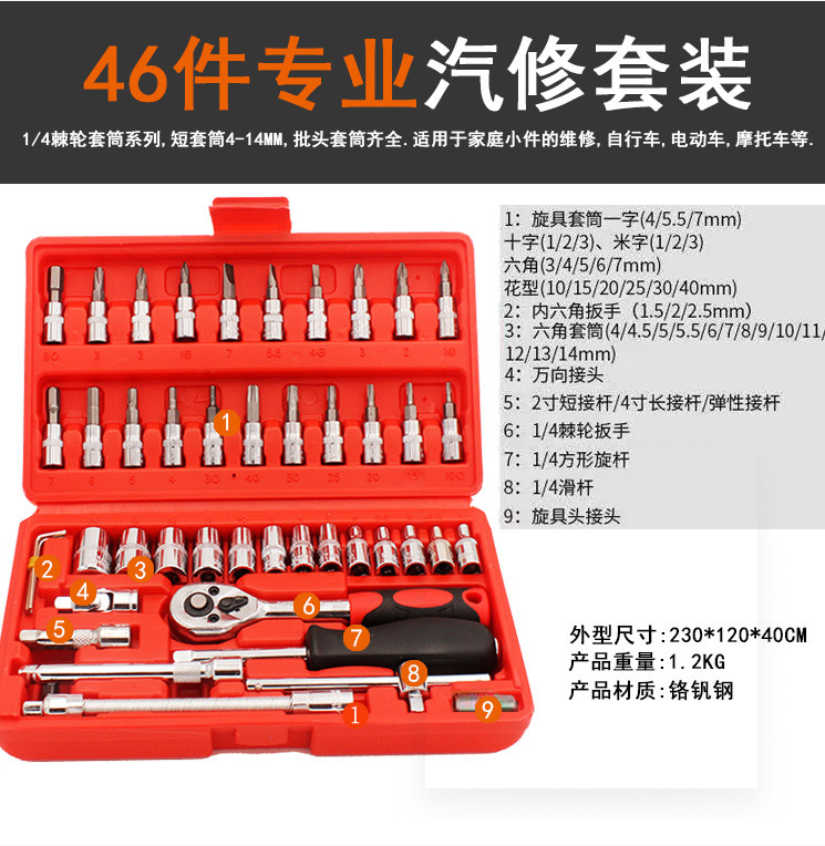 Você ainda se preocupa com a falta de ferramentas para consertos de carros e a dificuldade de encontrar ferramentas adequadas para desmontagem doméstica? Esta chave combinada multifuncional de 46 peças é sua "chave mestra de reparo". Desde emergências de veículos até desmontagem residencial, desde reparos profissionais de automóveis até manutenção de equipamentos externos, ele cobre todos os requisitos para apertar e afrouxar, permitindo que você se torne um "mestre dos reparos" a qualquer hora e em qualquer lugar.