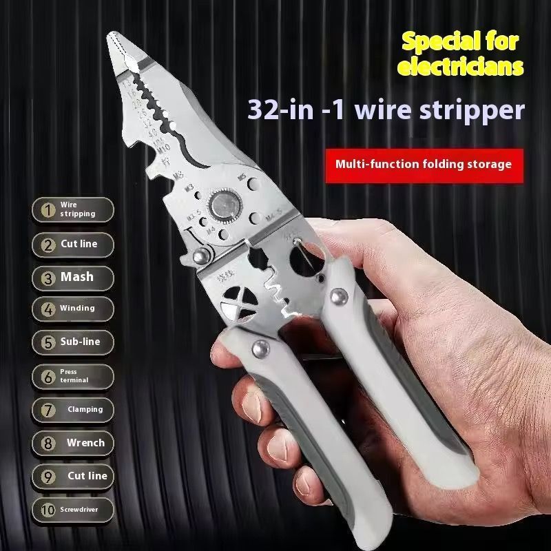 Ferramenta multifuncional para eletricista profissional: tesouras de fio e descascadores de fios, alicates de nível industrial adequados para fiação, corte, crimpagem, etc. - escolha ideal para uso doméstico e profissional.