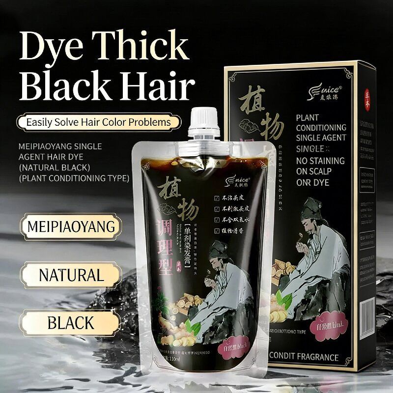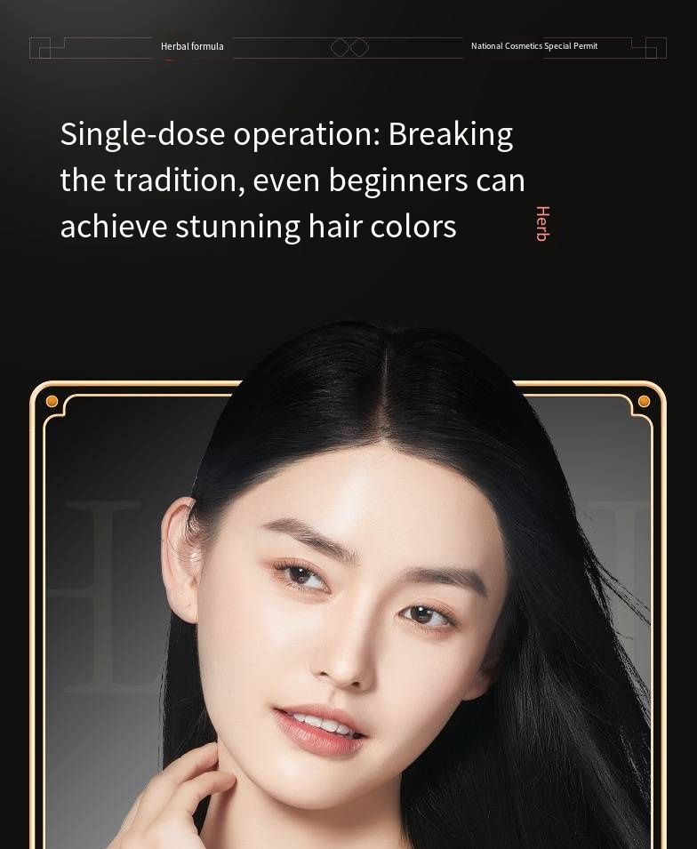 Extraindo essências vegetais como ginseng e gengibre, é livre de amônia e peróxido de hidrogênio, envolvendo suavemente os fios de cabelo: não apenas cobre com precisão o cabelo branco e o tinge em um "preto original" natural e rico, mas também pode nutrir o cabelo durante a tingimento, melhorando o ressecamento e o frizz, e deixando o cabelo liso e lustroso após a tintura.