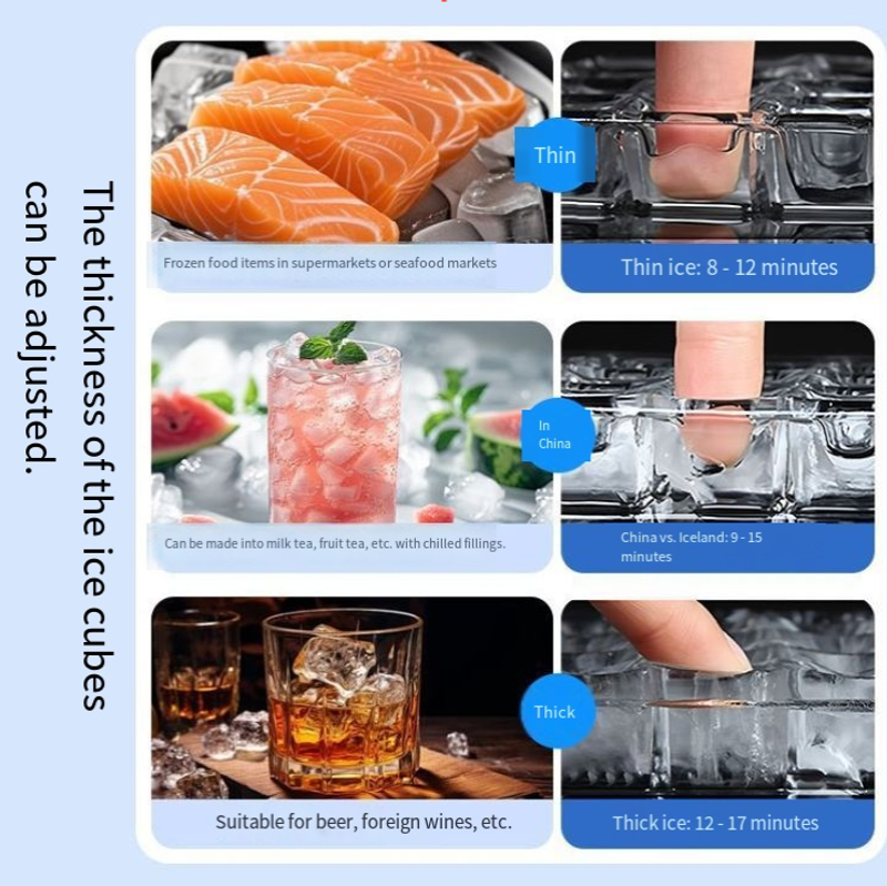 Sua velocidade de fabricação de gelo é verdadeiramente "relâmpago de verão", levando apenas 6-8 minutos para produzir um lote completo de cubos de gelo. Se você deseja fazer um refrigerante de frutas refrescante para seu filho ou preparar um rico americano gelado para si mesmo, não há necessidade de preparar cubos de gelo com várias horas de antecedência. Você pode tomar uma bebida gelada rápida e satisfatória sempre que quiser, permitindo que a alegria das bebidas geladas seja "instantaneamente percebida".