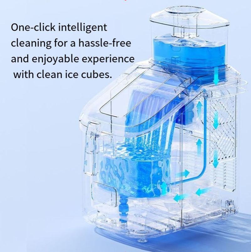 A limpeza é meticulosa até nos mínimos detalhes. Está equipado com uma **função de limpeza automática com um clique**, que pode completar a limpeza interna com apenas uma pressão suave. Isso elimina o incômodo da limpeza manual e evita fundamentalmente o crescimento de bactérias. Além disso, possui **tecnologia inteligente de limpeza de odores**, garantindo que cada cubo de gelo seja puro e livre de qualquer cheiro desagradável. Desta forma, quando desfrutar das suas bebidas geladas, irá apenas experimentar o sabor refrescante e delicioso, sem qualquer preocupação com a higiene.
