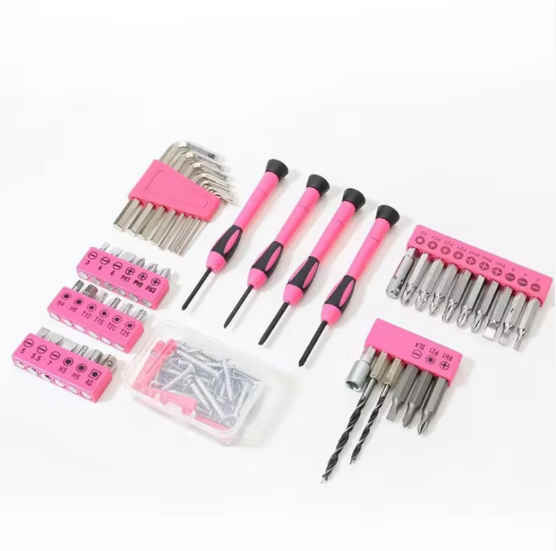 Kit de Ferramentas de Reparo Doméstico de Chave de Fenda Elétrica de 151 peças: Rosa "Equipe de Manutenção", fazendo a manutenção doméstica "parecer boa e ser poderosa"