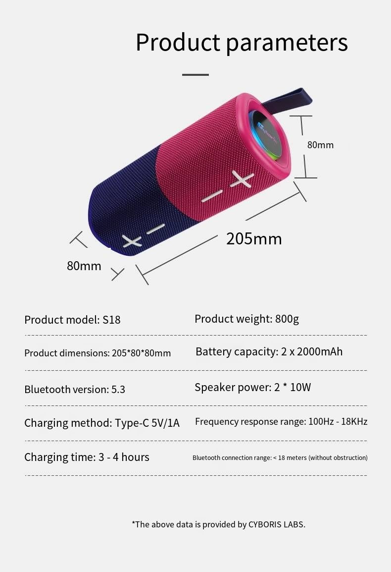 Também é realçado por luzes rítmicas coloridas, que mudam de cor conforme o ritmo da música. Durante o acampamento, é o impulsionador de atmosfera; Durante festas, é o foco visual. Que a música não seja apenas "ouvida", mas também "vista". A duração da bateria é longa, e uma única carga pode durar várias horas de diversão musical. Você não vai se preocupar com quedas de energia durante um dia inteiro ao ar livre.