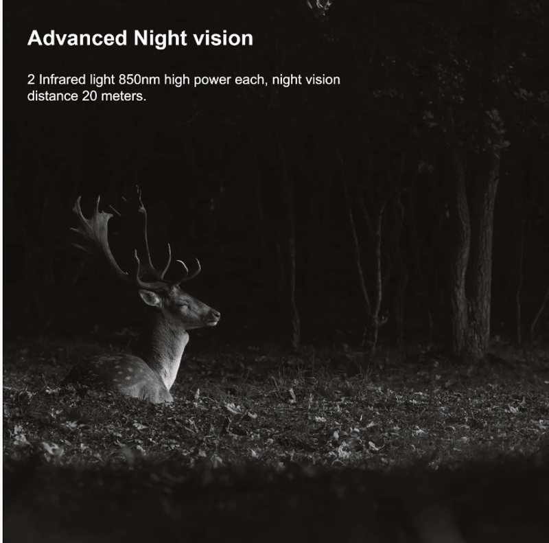 Nas profundezas da selva escura, uma câmera comum só pode capturar uma cena caótica. No entanto, esta câmera está equipada com duas luzes infravermelhas de alta potência de 850 nm, permitindo que o alcance da visão noturna atinja até 20 metros. Com sua tecnologia de imagem infravermelha silenciosa, ele permite a exibição clara das atividades dos animais noturnos: seja o passeio de veados sob o luar ou o movimento de raposas na grama, todos eles podem ser registrados em delicadas imagens em preto e branco, como se abrissem a "visão noturna escura" para você, permitindo que você entenda os hábitos noturnos desconhecidos dos animais selvagens.
