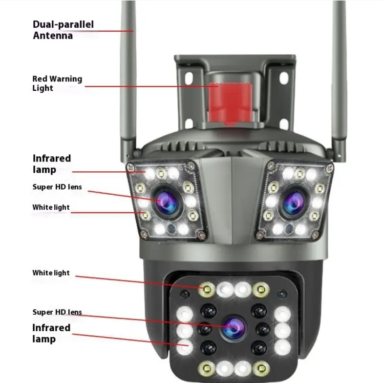 A segurança da sua casa é a principal demanda de todas as famílias. Quando você está preocupado com ruídos estranhos do lado de fora da porta, preocupado com idosos ou crianças sozinhas em casa, ou deseja verificar as flores, plantas e animais de estimação no pátio a qualquer momento, esta câmera de vigilância inteligente de 360 ° à prova d'água ao ar livre de visão noturna de alta definição de três telas, com seu desempenho completo de "monitoramento de várias telas + visão noturna de alta definição + compatibilidade com todos os cenários", torna-se o "Guardião Inteligente" da sua família, garantindo que sua sensação de segurança esteja sempre disponível