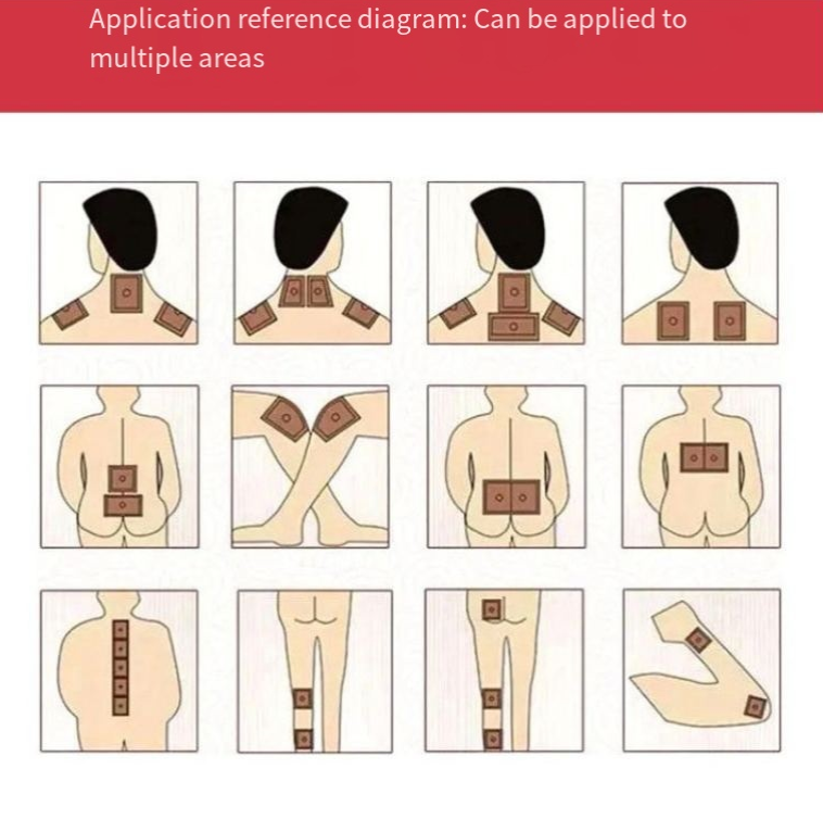 O adesivo é feito de materiais medicinais, amigáveis à pele e respiráveis, finos e aderem bem. Quando aplicada nos ombros, pescoço, costas, joelhos, etc., não deixa a pele congestionada nem causa alergias ou vermelhidão. Durante o trabalho diário no escritório, aplique nos ombros, em casa ou deitado, aplique na cintura e, mesmo ao sair para caminhar, aplique nos joelhos. Não afeta o movimento e pode proporcionar alívio silencioso. Você pode aproveitar o relaxamento onde quer que esteja.